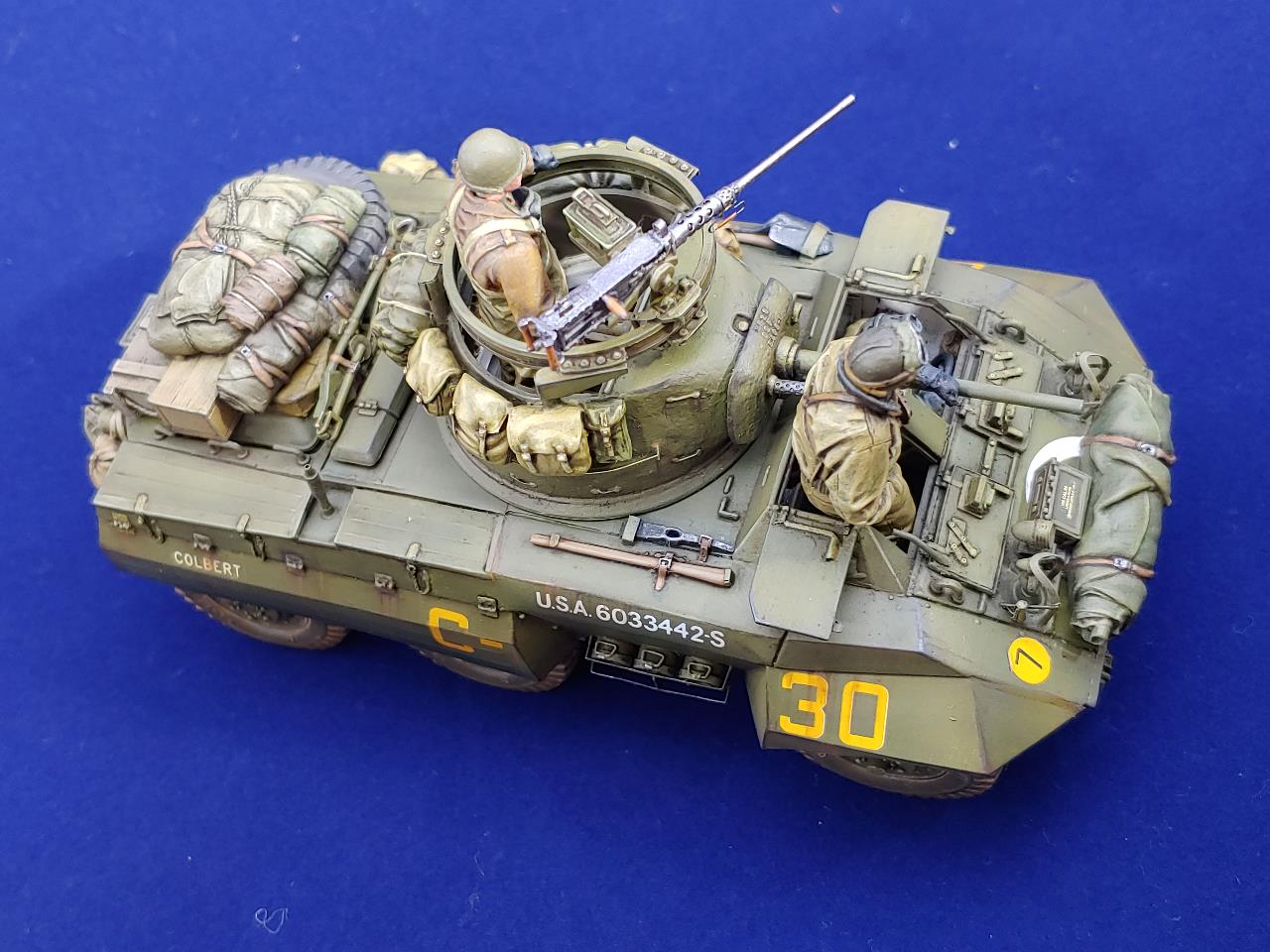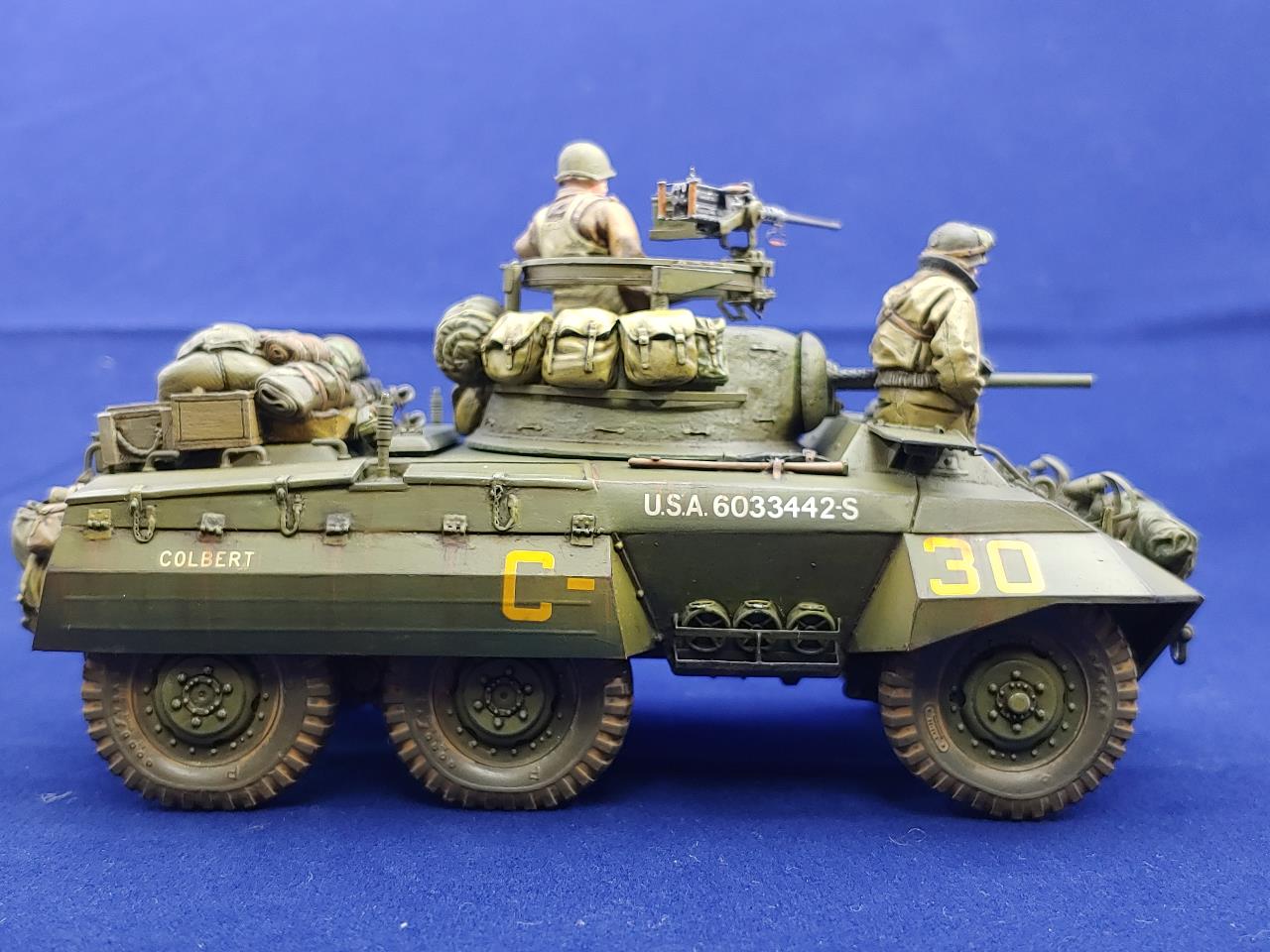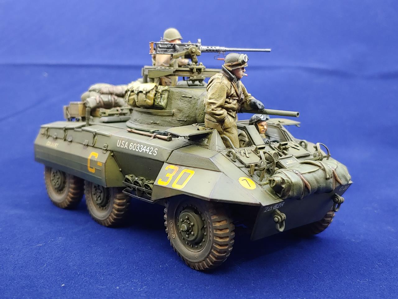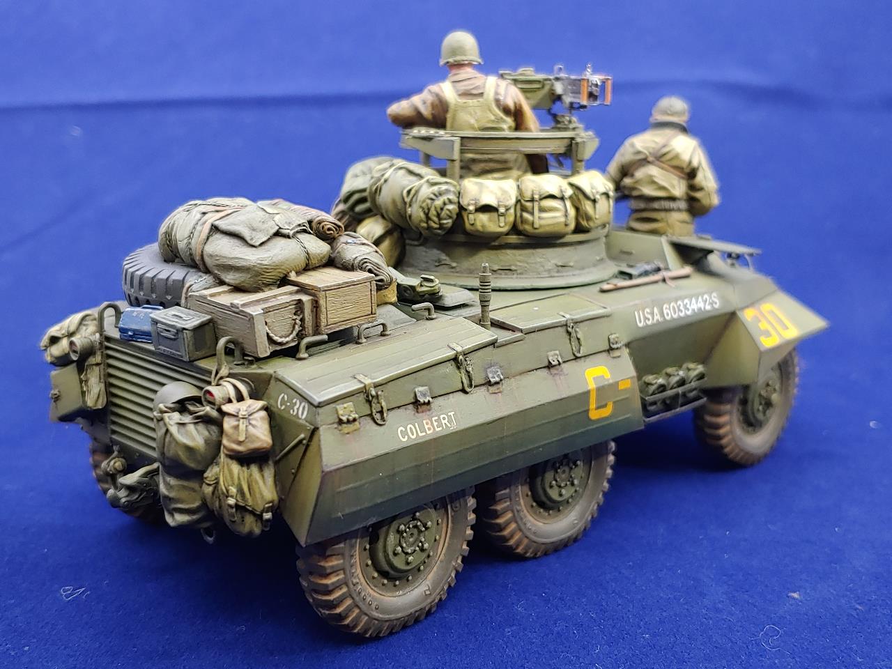Italeri제 M8 그레이하운드 장갑차에 Voyager Model Photo-Etching을 적용하여 조립한 뒤에 DEF의 레진제 바퀴와 Legend Production와 Value Gear제 장비품 그리고 The Bodi miniauture의 인형3인방을 태워보았습니다.