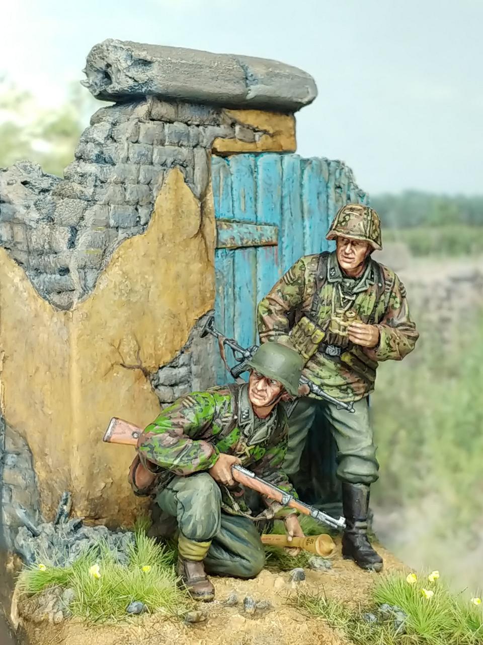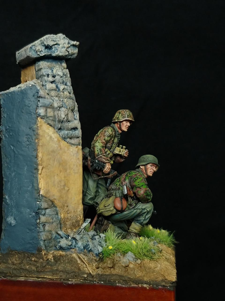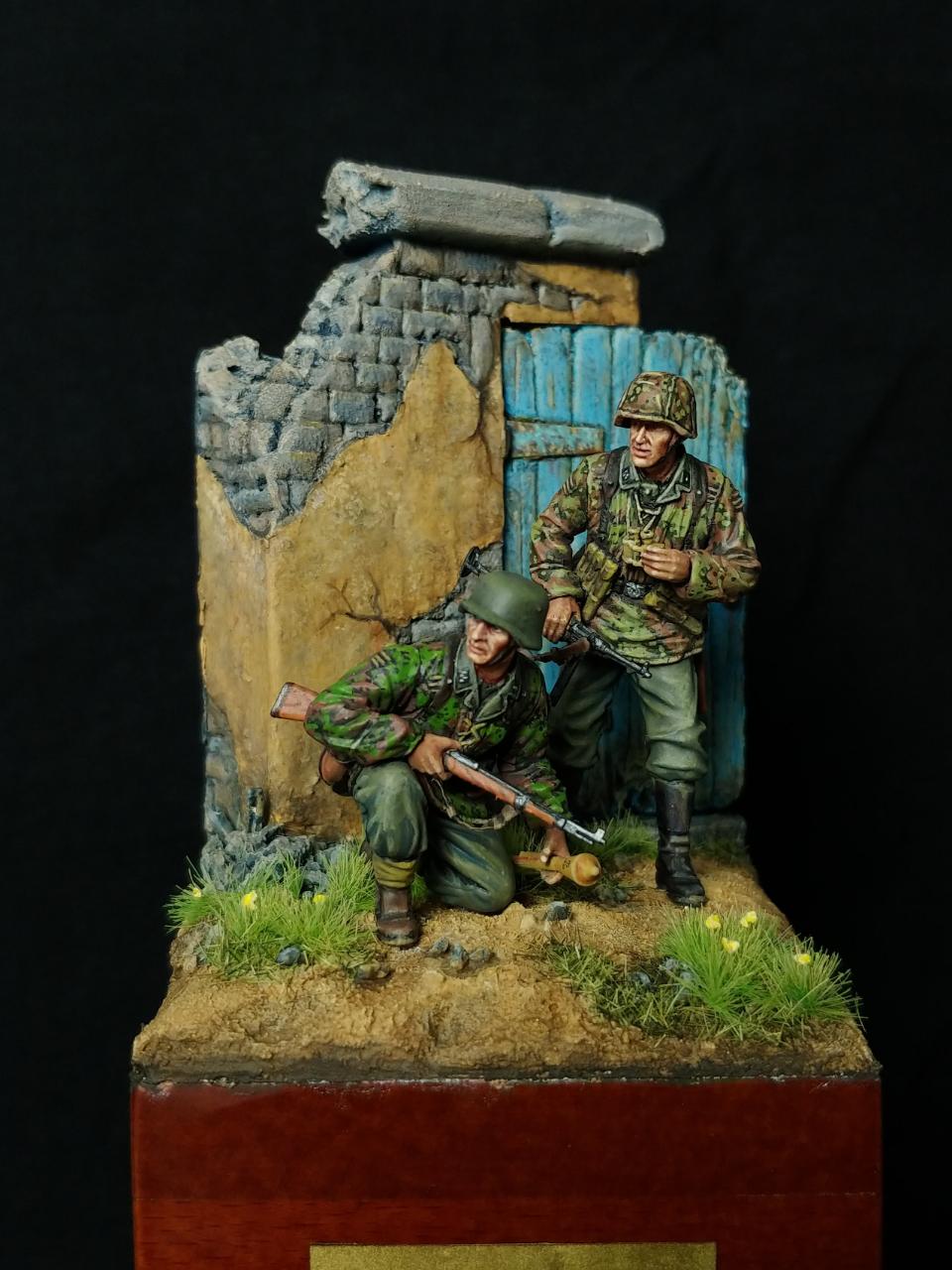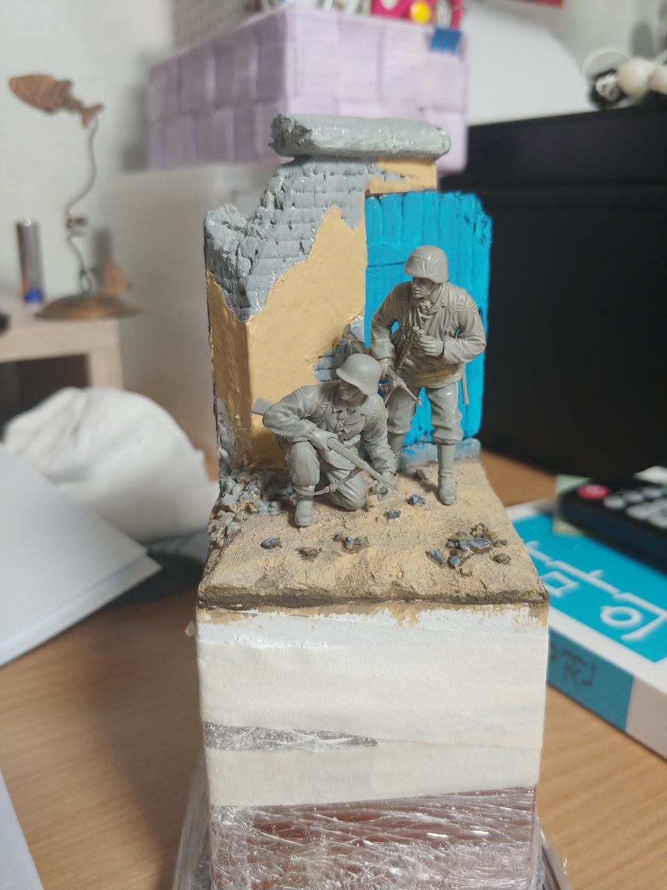 오랜만에 인사 드립니다. Dragon사 인형에 베이스 추가하여 제작하였습니다. 인형 조립은 약 10 년전, 베이스 건물 제작은 3 년전, 이번에 드디어 도색 했습니다. 재빠른 완성을 위해서 블렌딩 등 디테일한 작업들은 많이 생략하고, 회화적인 느낌 위주로 즐겁게 작업 하였습니다. 사실 이것도 짬짬이 도색하느라 2개월이나 걸렸습니다. 완성도 좋지만 이제 다른 걸 만들 수 있다는 사실이 더 기쁘네요.