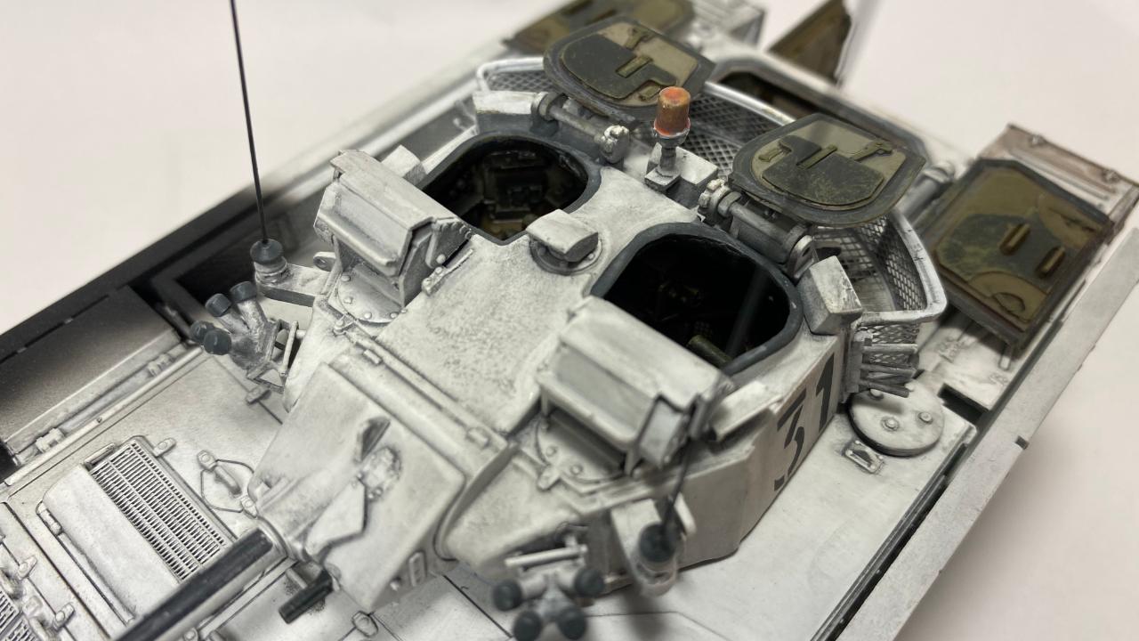 전차장과 포수용 페리스코프가 포함되어 있는 포탑 상부의 인테리어도 만들땐 참 복잡했는데 완성하고 나니 정말 흐뭇했었습니다. Accurate Armour는 영국군으로부터 직접 자료를 받아서 내용의 충실도도 높고, 무엇보다도 설명서에는 각 부품의 실제 명칭을 모두 표기하고 있어서 모형작업을 할때도 어떤 구실의 부품이 달리는지 이해할 수 있어서 좋았습니다.