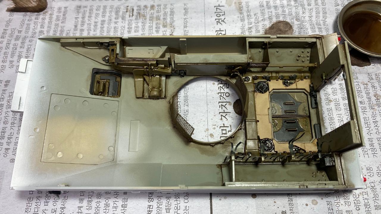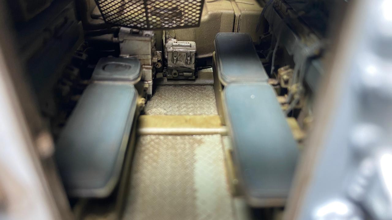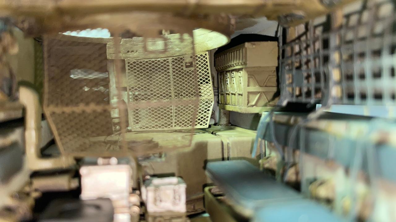 포탑 결합전에 미리 찍어놓은 실내입니다. 후방해치의 앵글에서 촬영해서 내부가 다 보이지 않는 것이 좀 아쉽습니다. 이후에 포탑을 추가하니 빛이 거의 안들어가서 아무것도 보이지 않는 것이 좀 아쉬웠습니다.