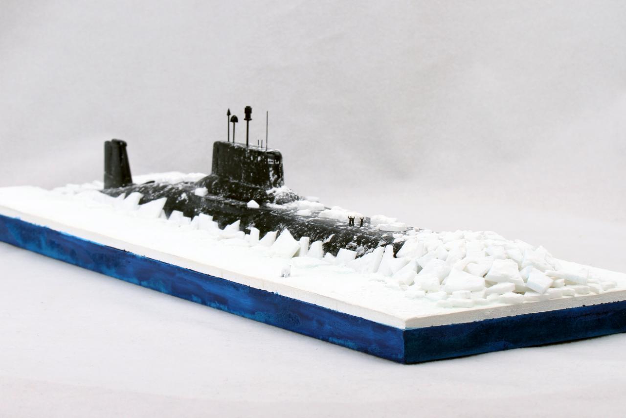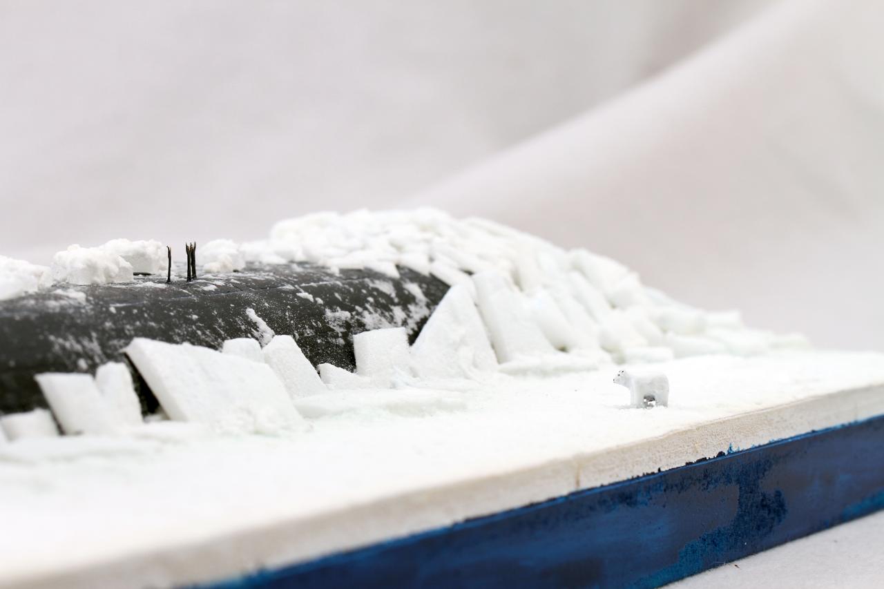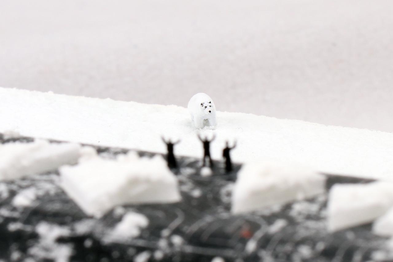 북극해의 얼음을 깨고 부상한 후 잠수함 밖으로 나 온 승무원이 북극곰을 발견하고 좋아하는 모습을 연출해 봤습니다.
