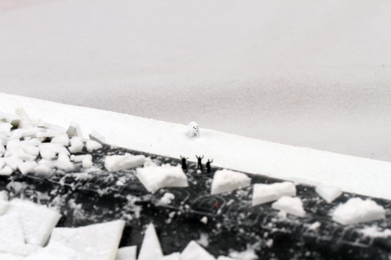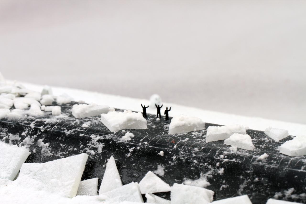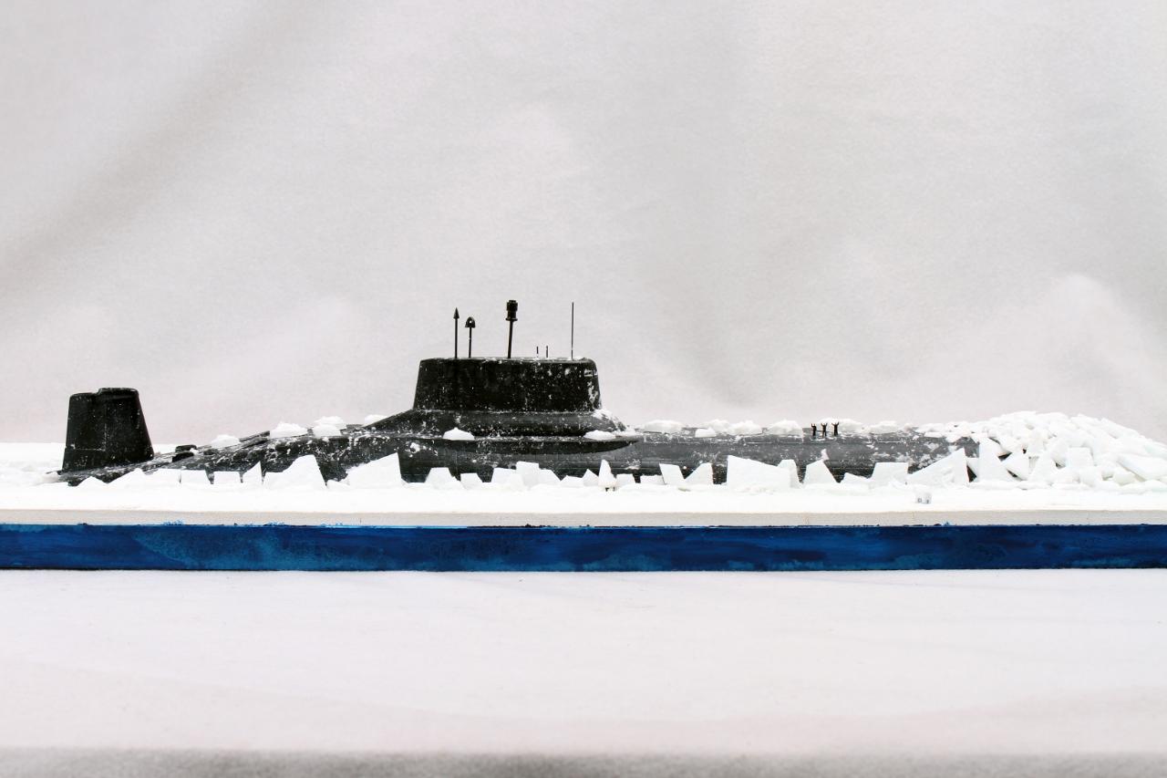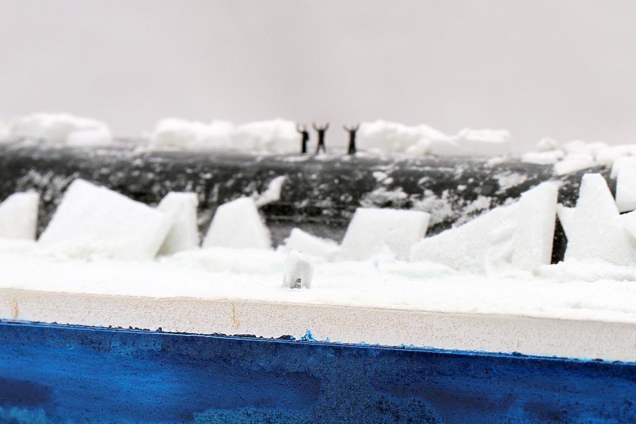 북극해의 얼음을 깨고 부상한 후 잠수함 밖으로 나 온 승무원이 북극곰을 발견하고 좋아하는 모습을 연출해 봤습니다.
