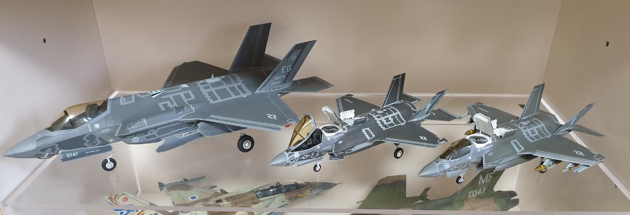 지금까지 제작한 F-35시리즈인데 왼쪽부터 키티호크의 F-35A, 하세가와 F-35B, 아카데미 F-35B 입니다. 역시 아카데미키트가 디테일은 물론 색상이 제일 맘에 듭니다.