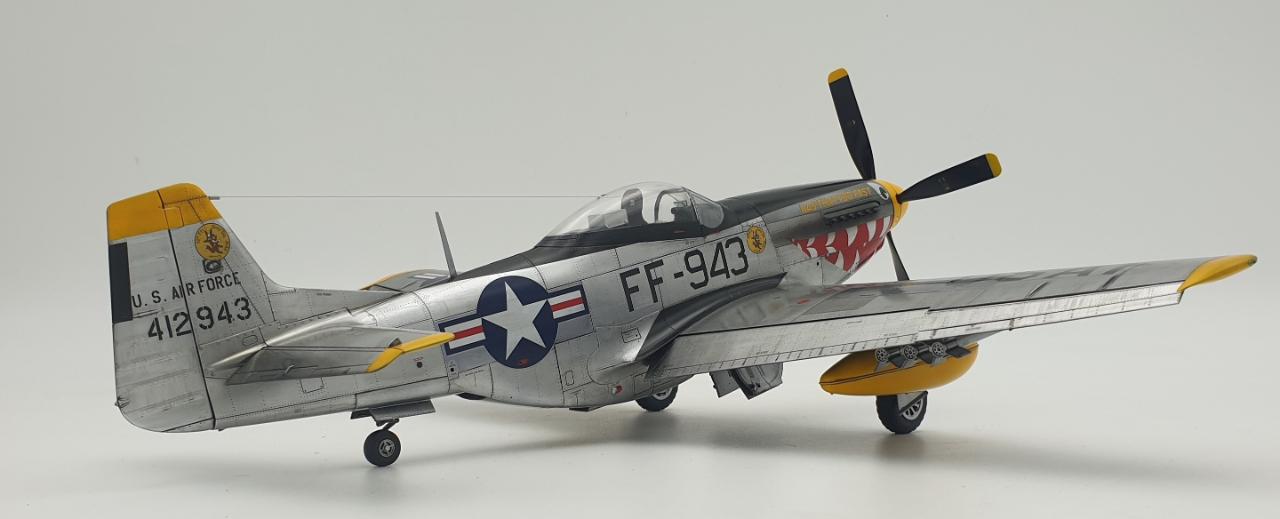 1/32 스케일 타미야의 한국전쟁 버전 무스탕을 작업해보았습니다. 킷 그대로 만들었고 제작기간은 3주 걸렸습니다. 처음 시작할때는 깔끔하게 번쩍거리는 은색기체를 만들고 싶었는데 쉽지 않더군요 ^^;