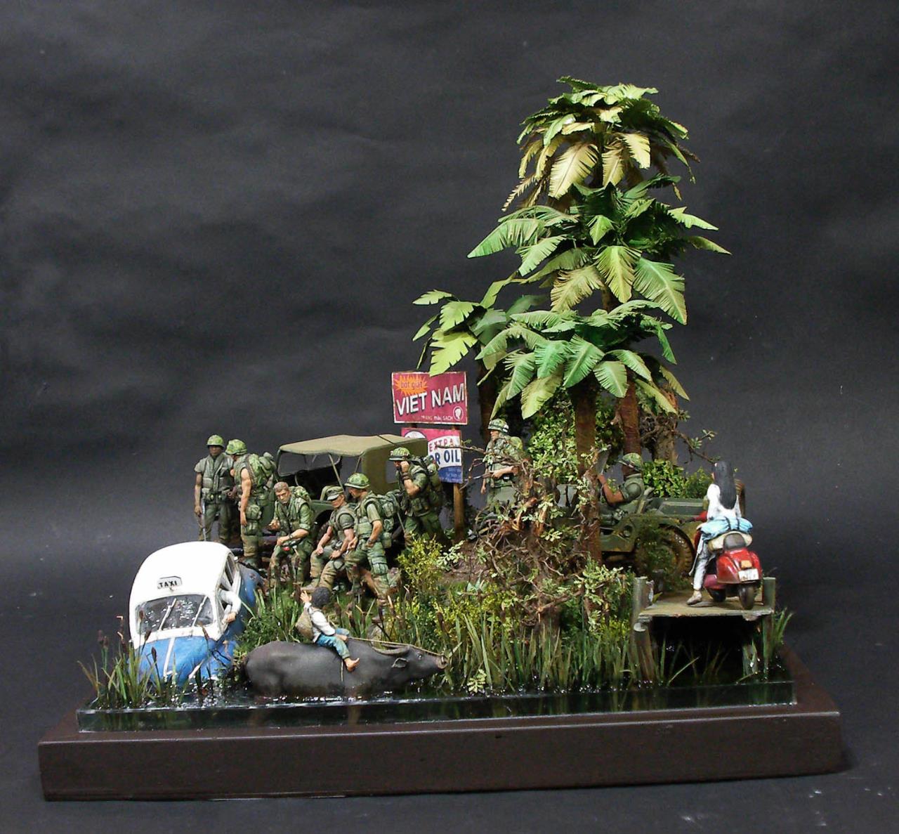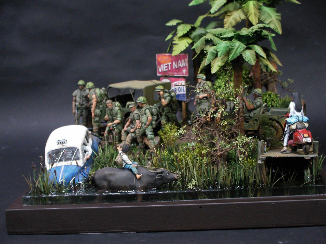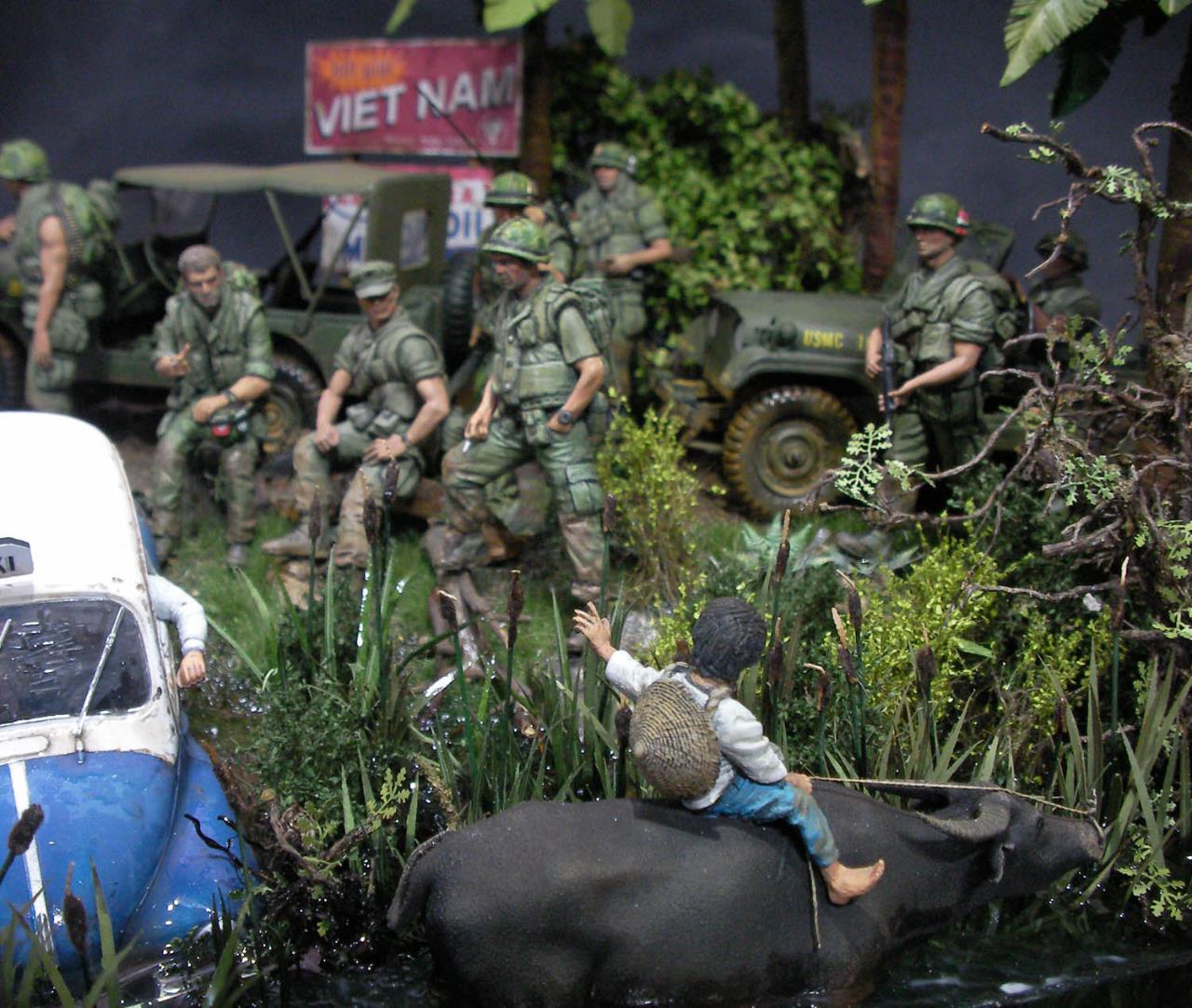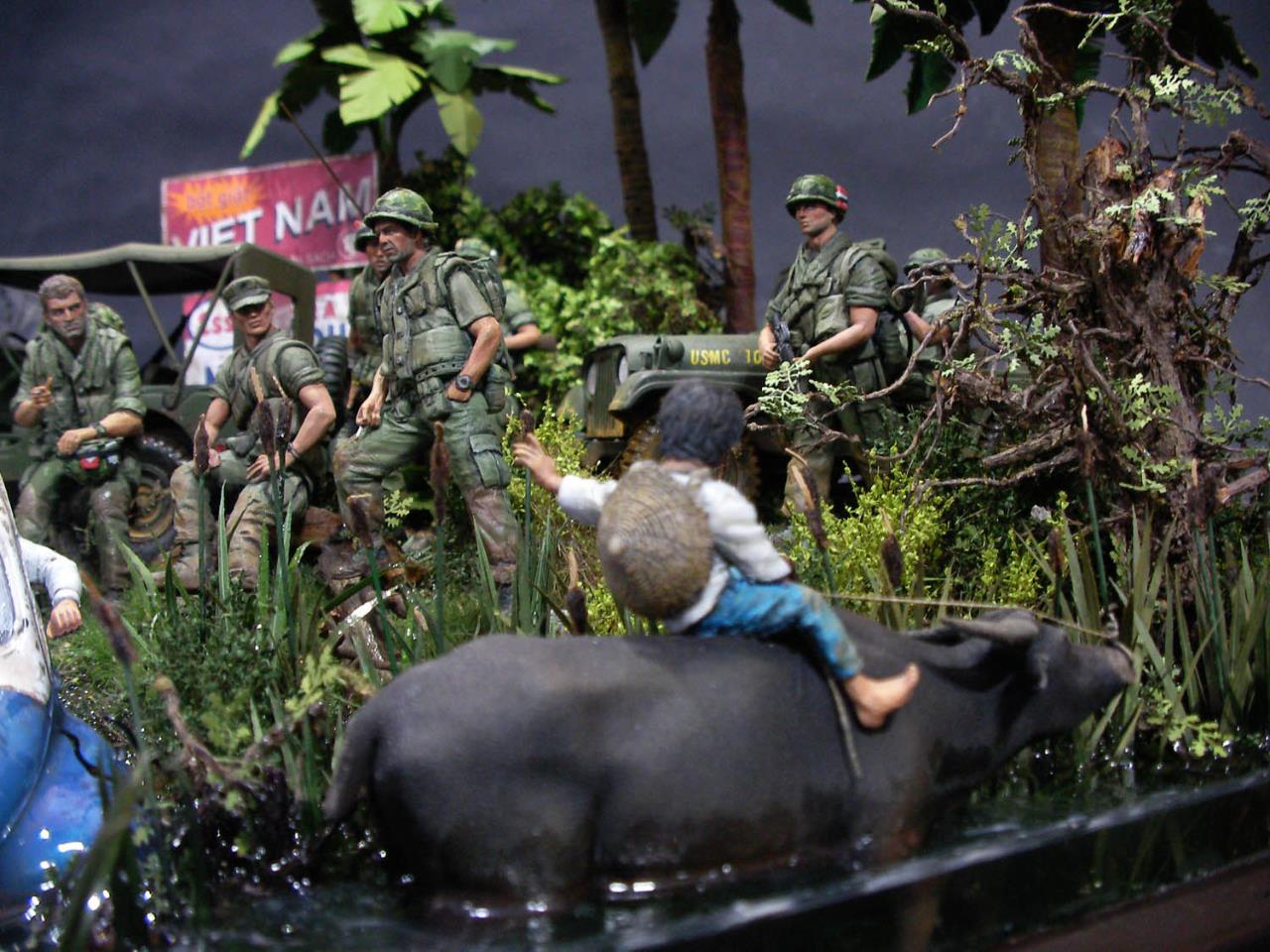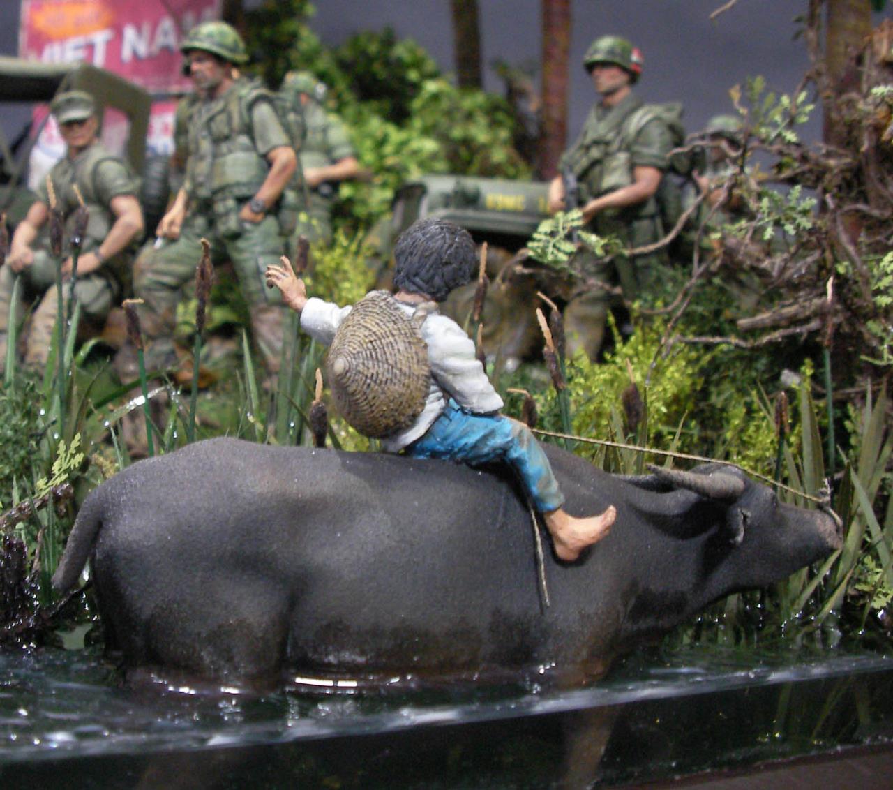 무전병 피규어는 유일한 75MM베트남 피규어를 개조했습니다 무등에 올라탄 소년 피규어는 물소에 태웠습니다..