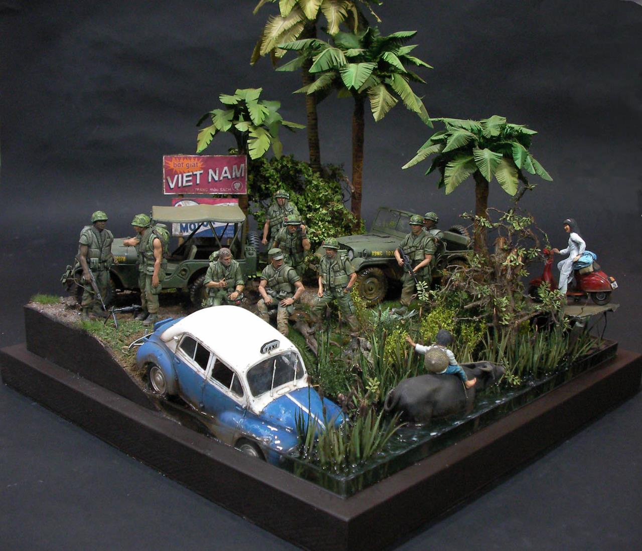 베트남전 24스케일 피규어는 구할수가 없는터라 자작및 개조등을 통해서 만들었구요.. 군인이 아닌 피규어들 몇몇 회사제품등을 개조해서 올렸습니다 스쿠터 피규어는 많이 익숙하실듯...아시는 분은 아재~`ㅎㅎ로 인정합니다