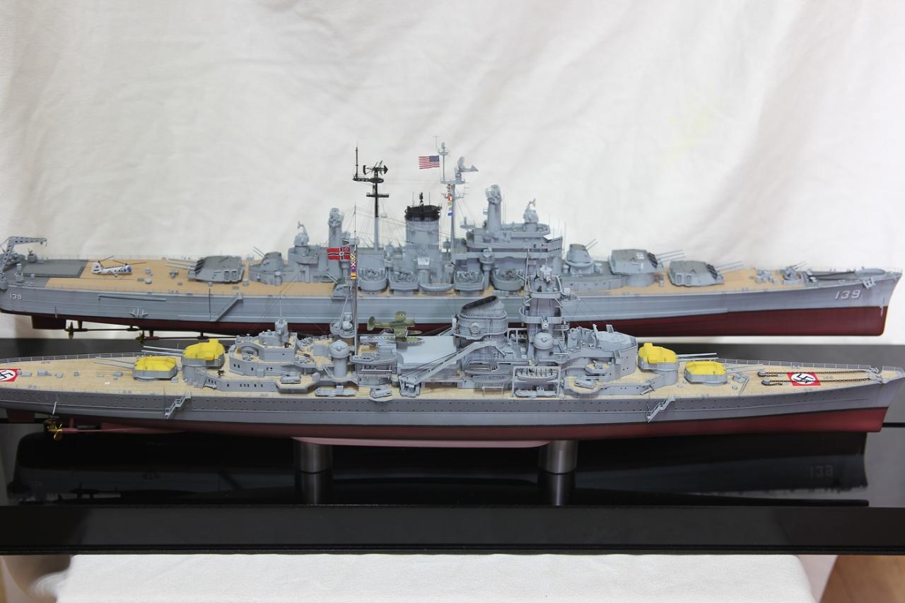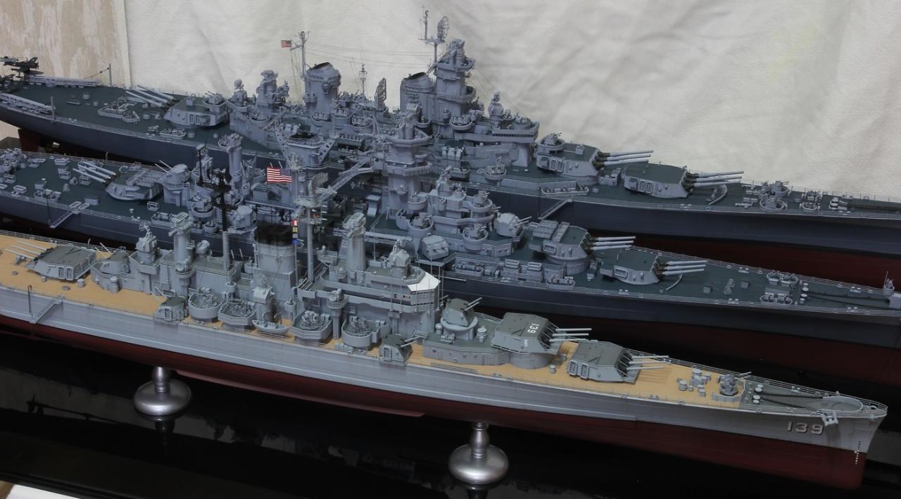 앞에서부터 디모인급 중순양함(8인치 주포), 알래스카 대형순양함(12인치 주포), 미주리 전함(16인치 주포)