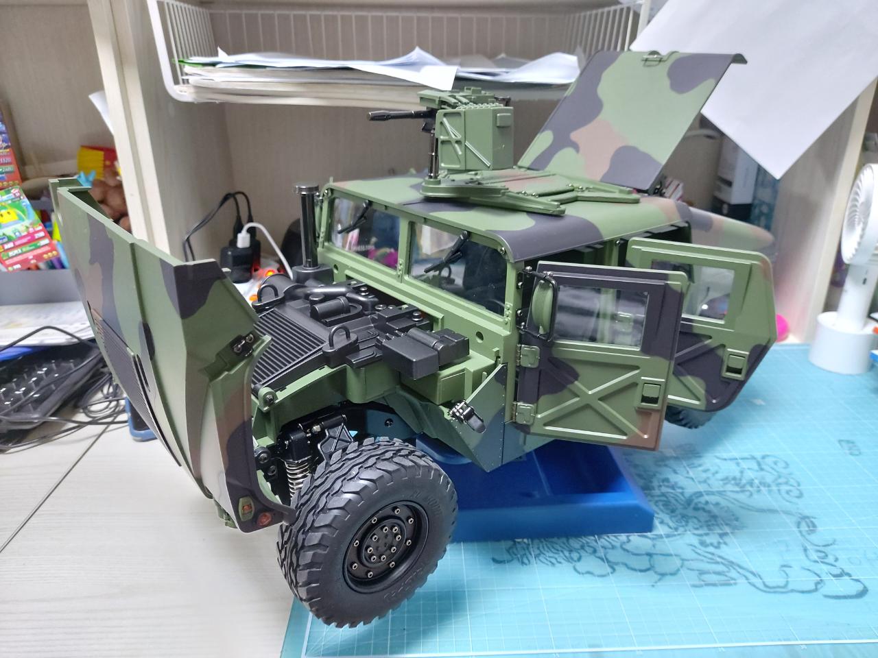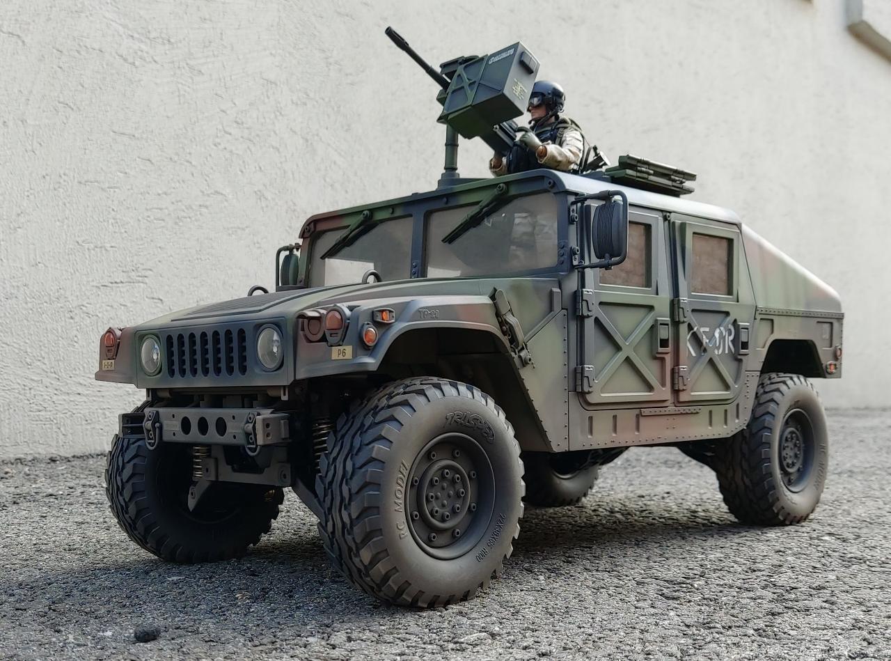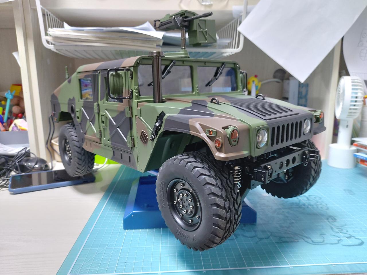 RC유저분들에게 '대륙의 실수'라 불리우는 험비입니다 상품명은 P408 Military truck인데 아마도 라이센스 문제를 피하려는 대륙의 꼼수인듯 합니다 실수라 불리우는 이유가 가성비 갑이기 때문입니다 하부 프레임 등 주요 구동부 풀메탈, Led점등, 엔진 사운드 등 타미야를 능가하는 디테일과 품질이 놀라워 주저없이 구입했네요