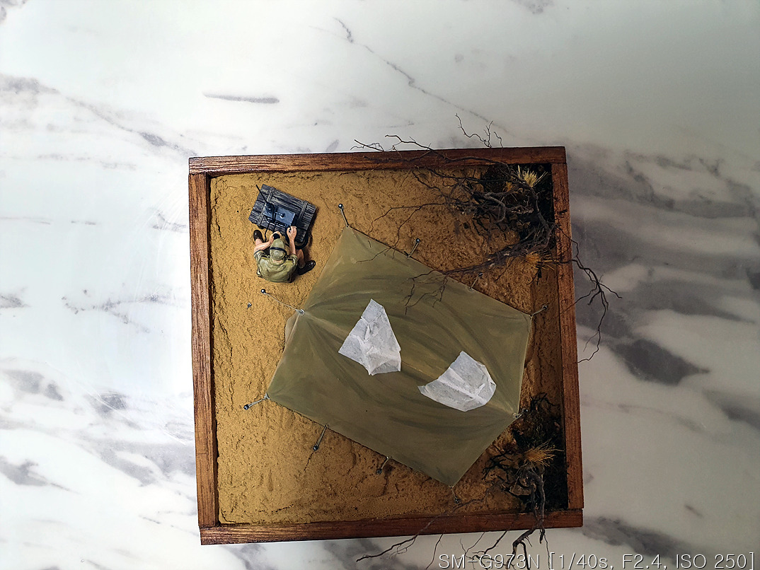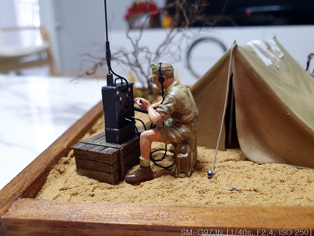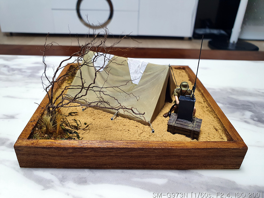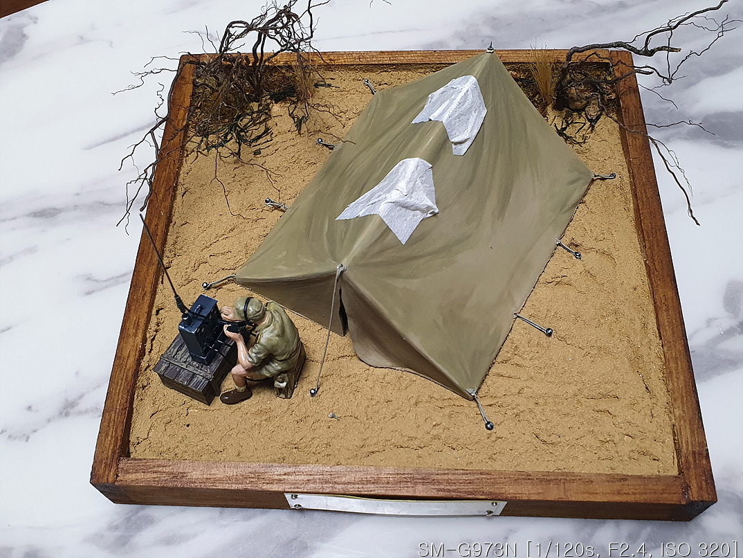 디테일한데가 별로 없어서 통신장비의 안테나 선과, 텐트의 말뚝, 로프는 자작했습니다.