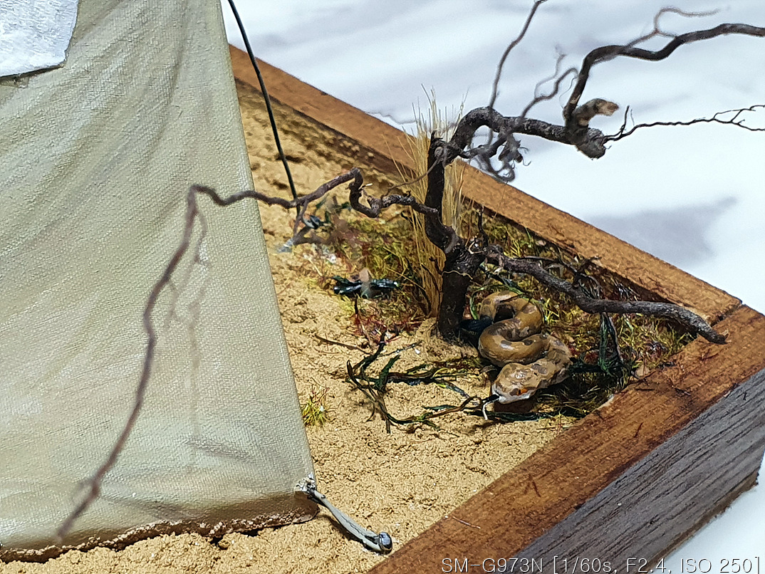 그리고, 사막에 무전병과 텐트만 있으면 심심할것 같아서, 나무 두개와 뱀하나를 넣어봤습니다.