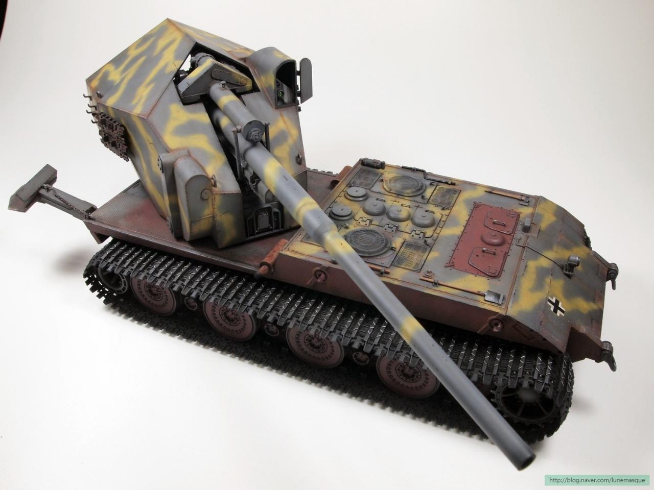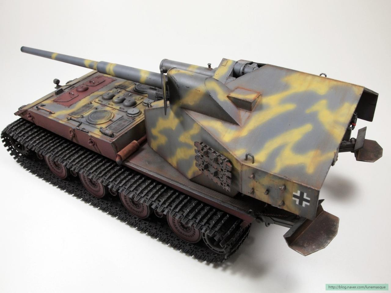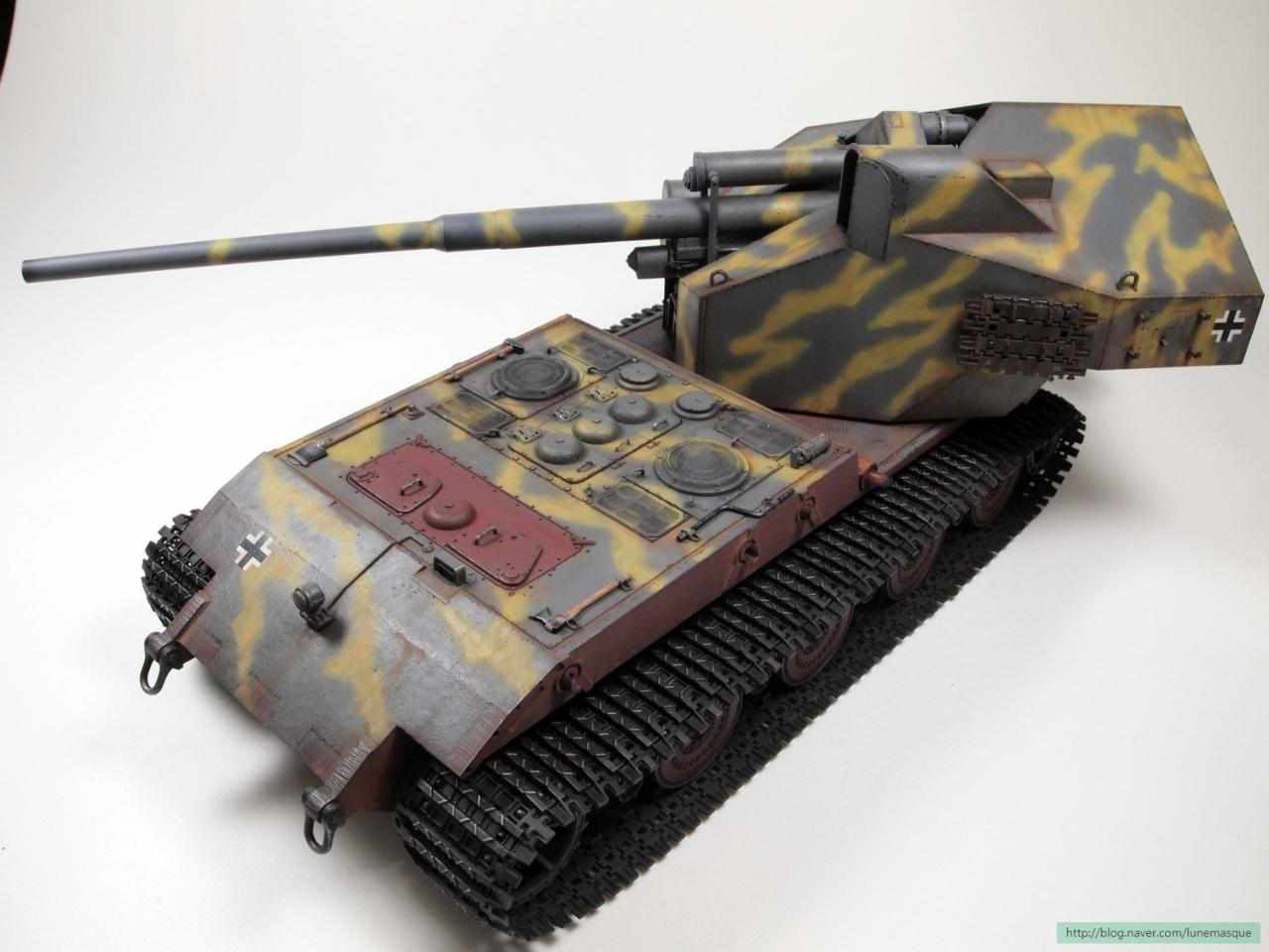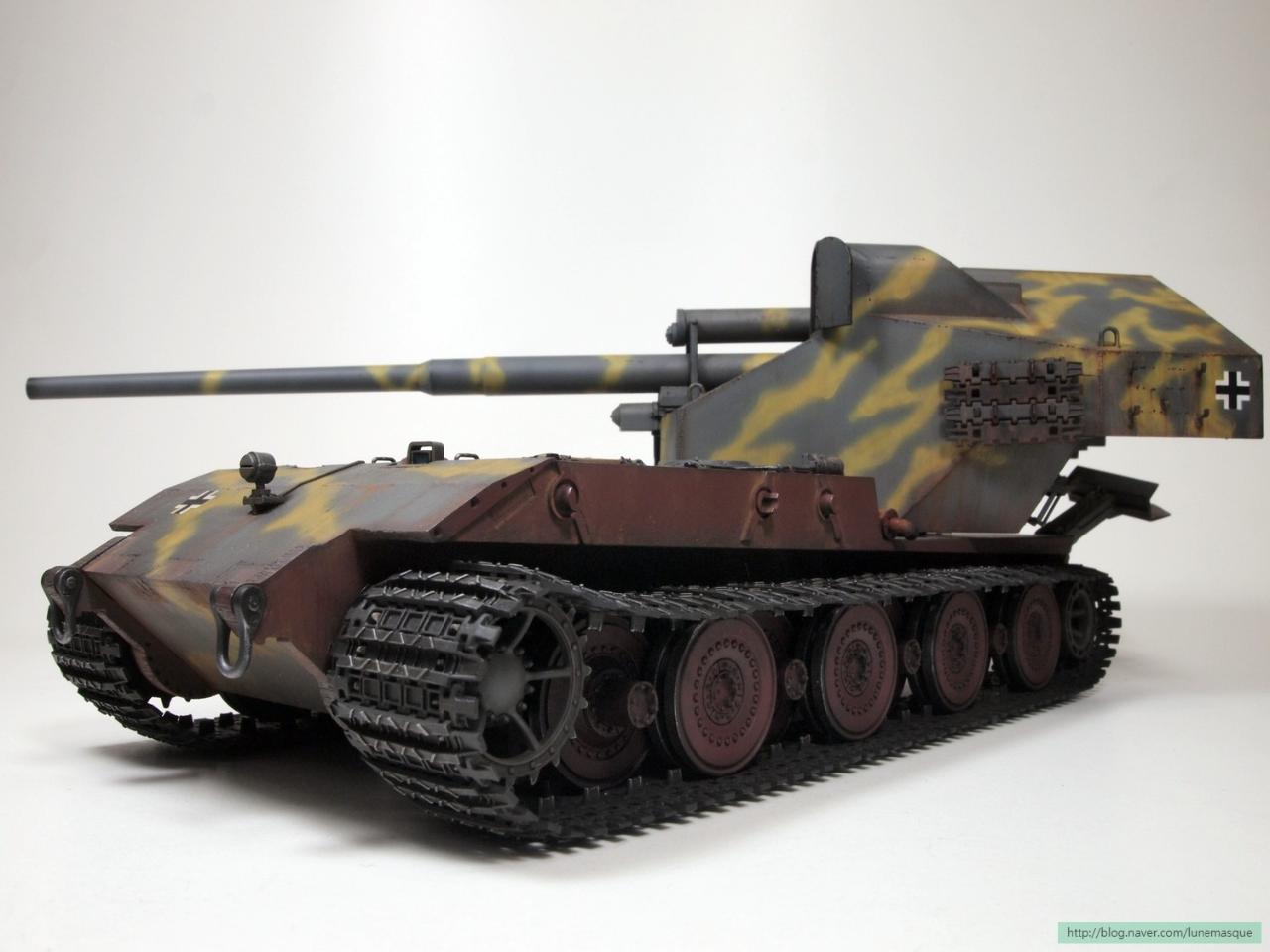게임 설정 상 차대는 E-100을 사용하고, 주포는 128mm이고 너프 후 5연발 사격이 가능했습니다. ^^