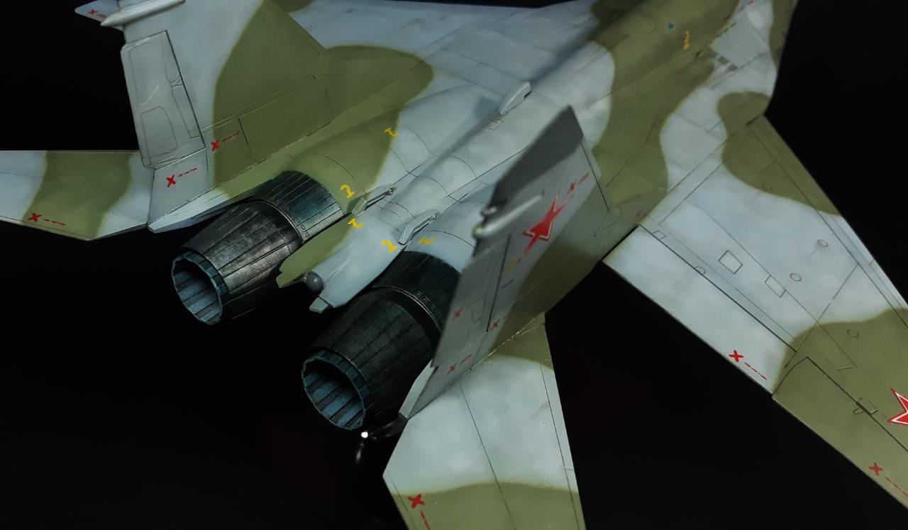 분실한 부품으로 인해 비행상태로 적당히 색칠하여 마무리 하였네요. 무장도 일부 분실로 동사의 SU-27 것으로 대체하였습니다.