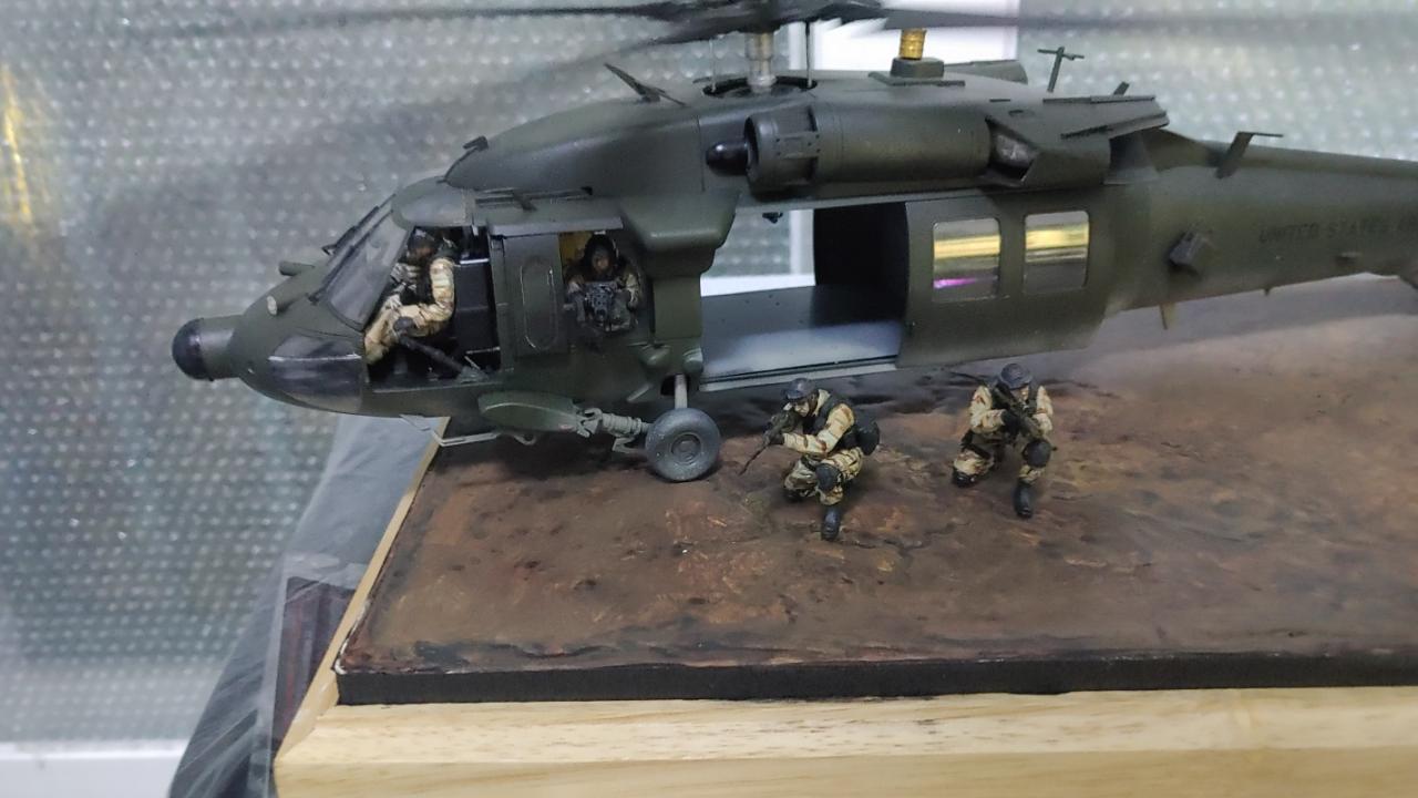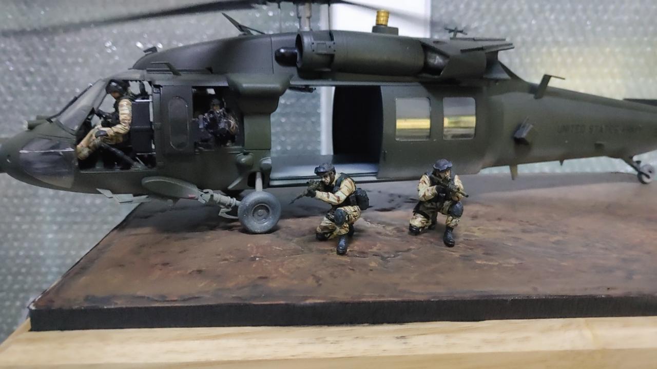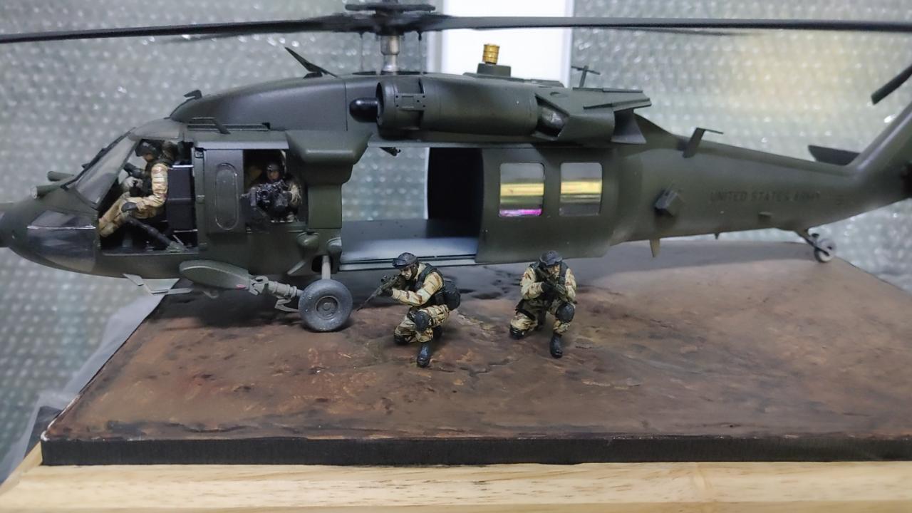 블랙호크는 아카데미 UH-60L을 사용해 영화 장면을 보면서 없는 부분을 이래저래 만들어 붙여줬습니다...