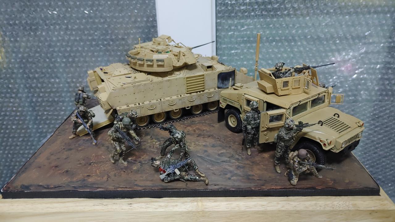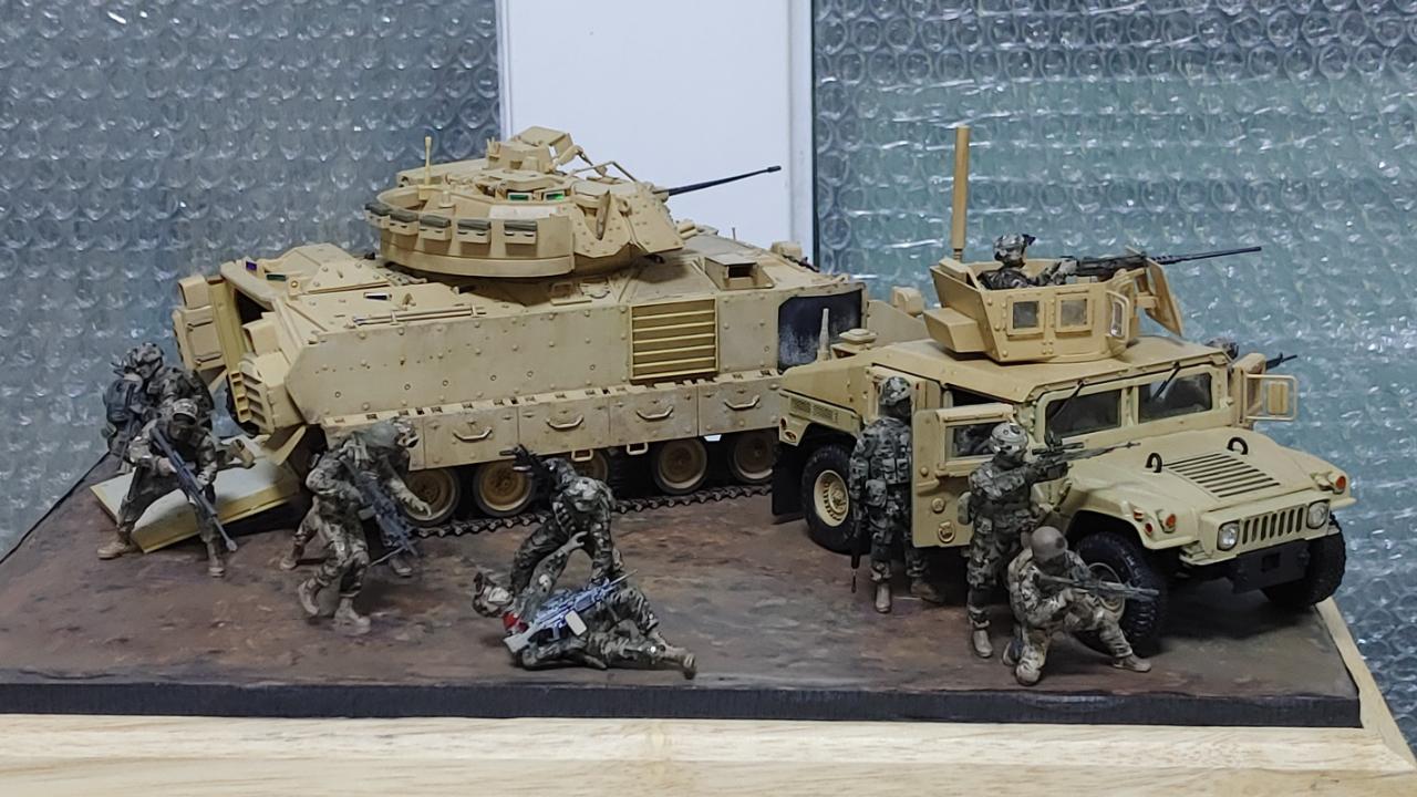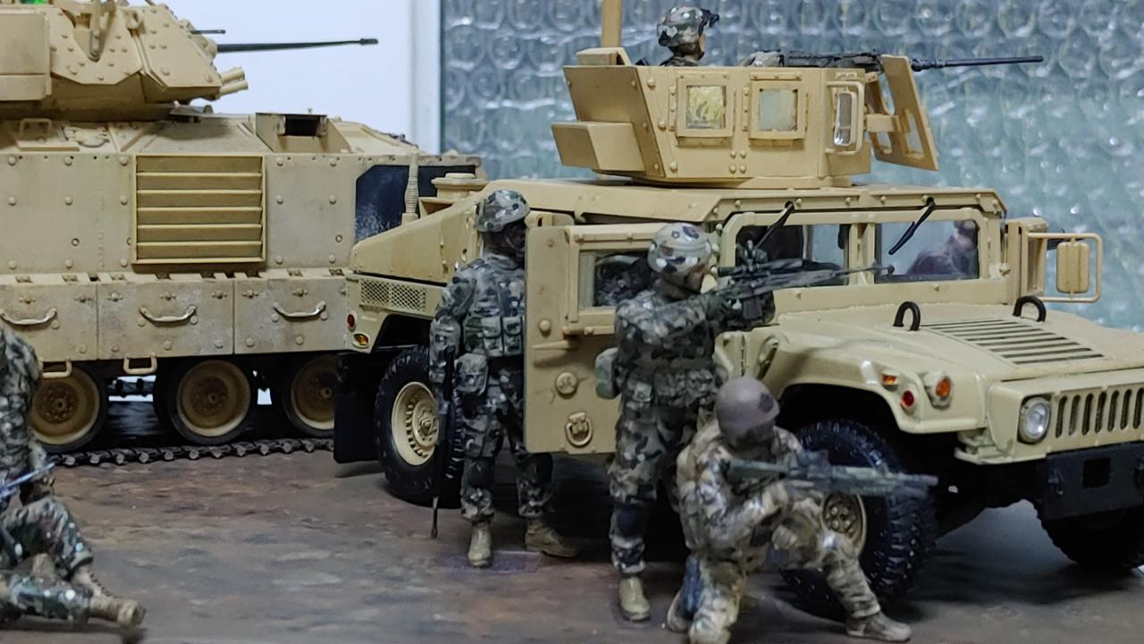 M2A2 보병전투차와 M1151 장갑험비에서 병력이 내려 전개하는 상황을 만들어 봤습니다...