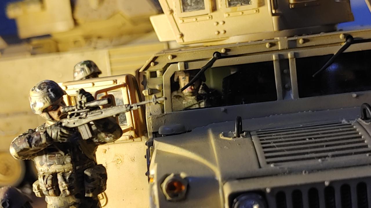 차량위장은 사막색이고 보병위장은 멀티캠베이스의 OCP를 상정하고 도색해줬습니다...