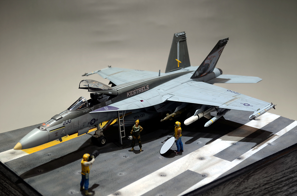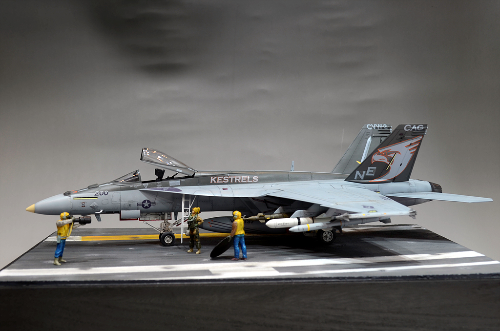 이탈레리의 1/48 F/A-18E Super Hornet입니다. 미익의 독수리("매"일지도?) 마킹에 반해서 부산에서 있을 타미야 콘테스트를 위해서 준비하던 해리어 킷을 대신해서 빠르게 작업을 했습니다. 베이스는 스컹크웍스의 제품을 참고로 자작해서 만들었습니다.