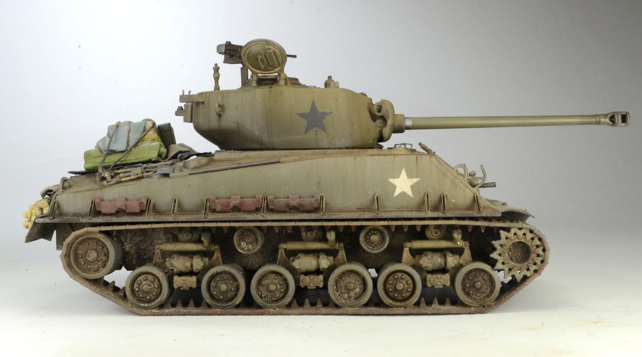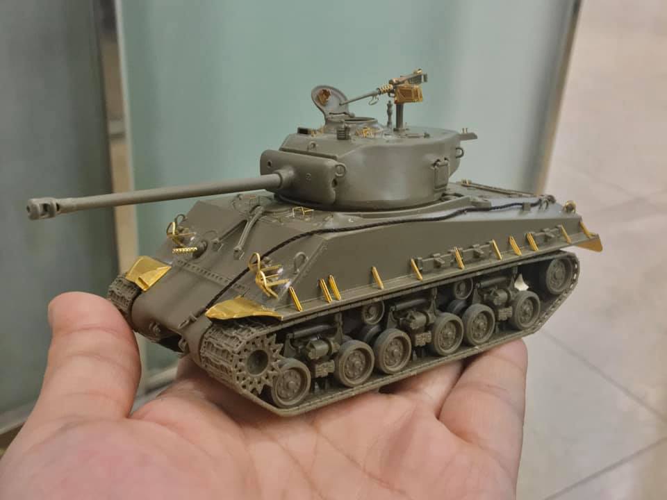 타미야의 1/48 M4A3E8에 하울러 에칭, 알마라는 회사의 레진 장비품을 적용했습니다^^