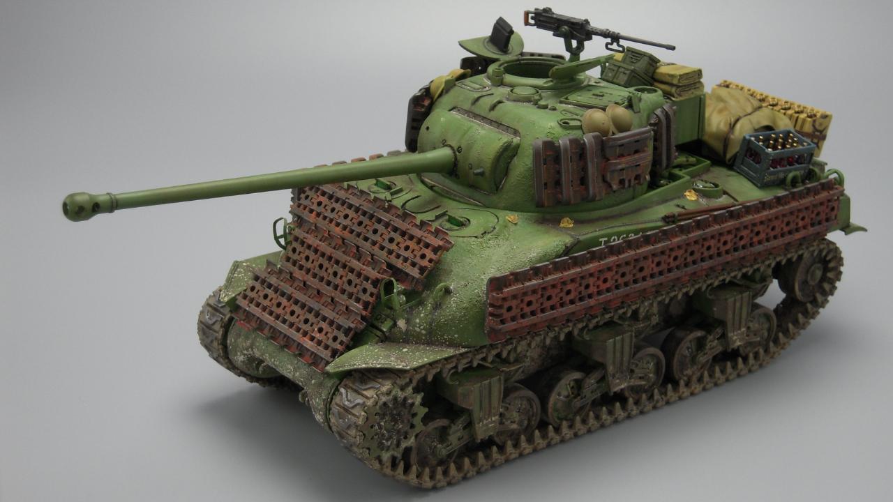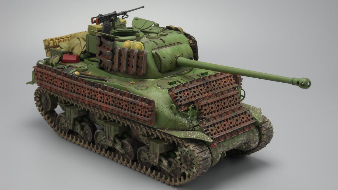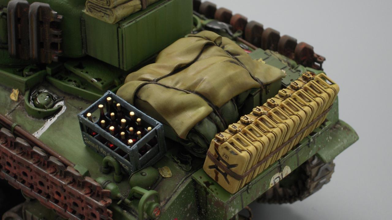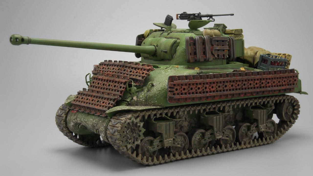 DS 트랙의 진행성 불량으로 인해 장기 중단된 프로젝트였는데, AFV club의 비닐 궤도를 이용해서 겨우 완성했습니다. 트랙으로 증가 장갑을 둘러준 기록 사진을 참고해서 처칠 궤도를 차체와 포탑에 칭칭 감아 보았습니다.