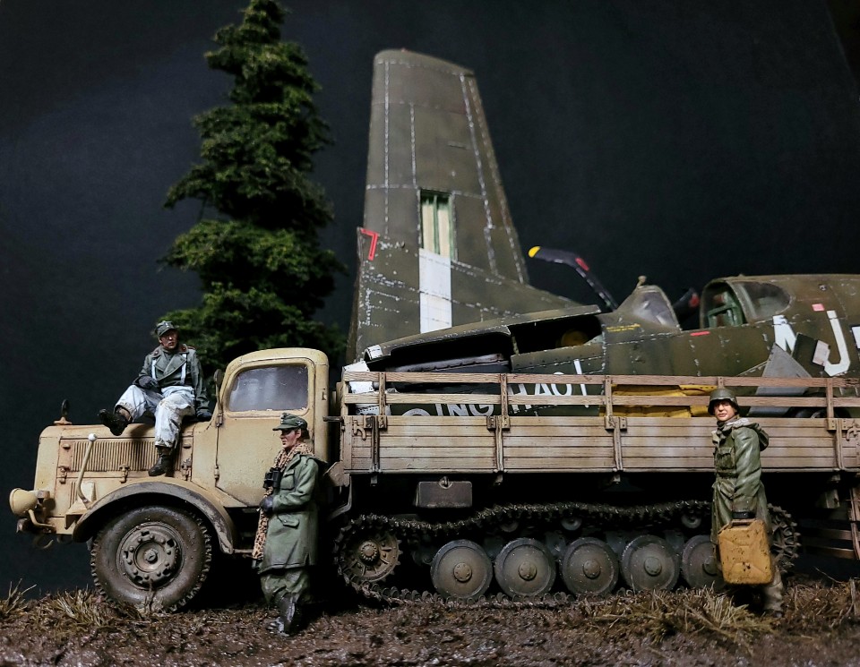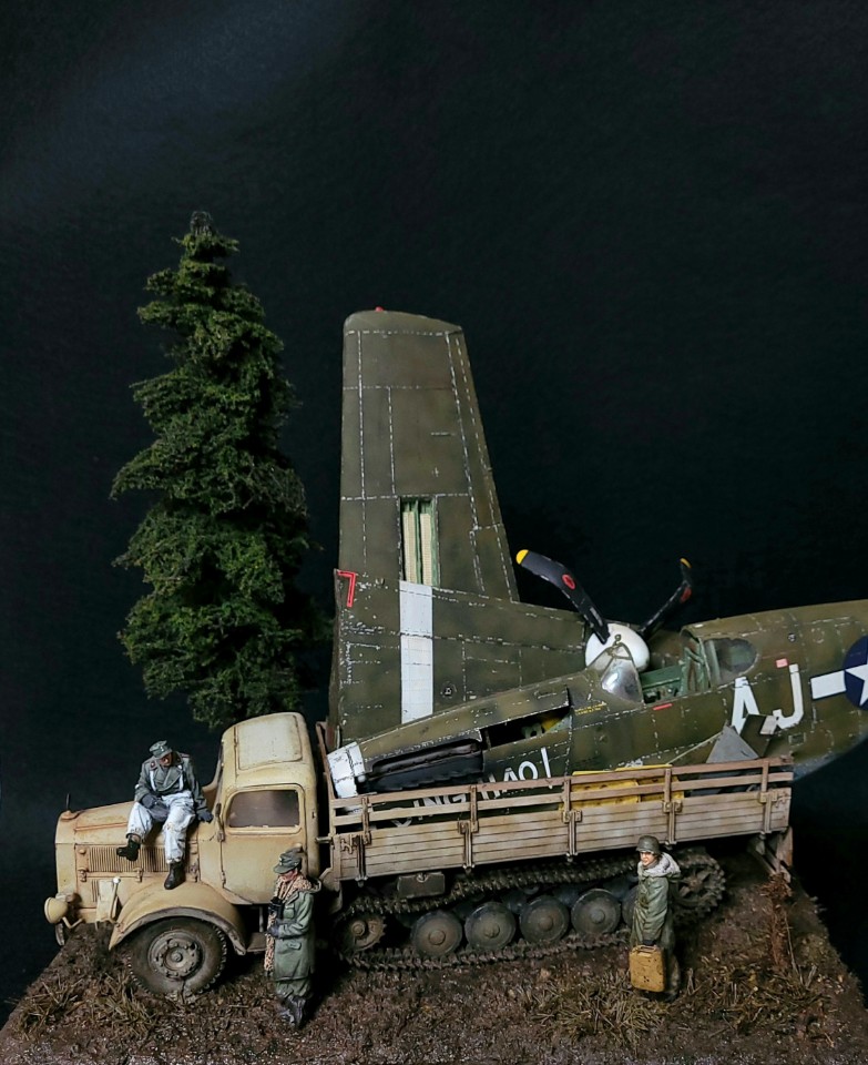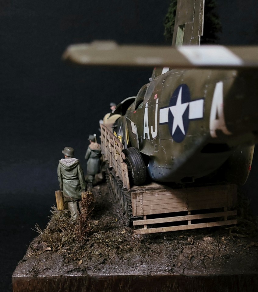 대전말 독일 접경지에서 추락한 무스탕을 독일군이 트럭으로 실고가다가
