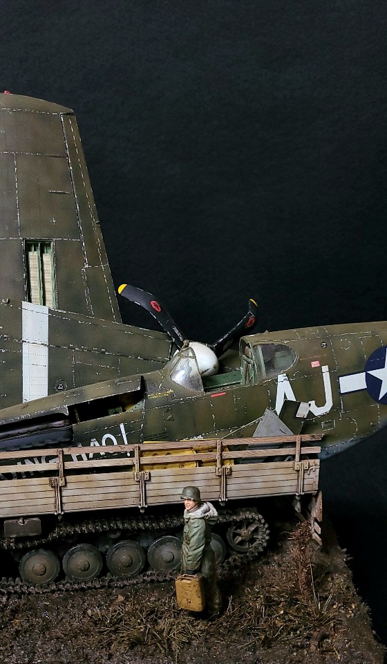오래전 가지고 있던 1/32 무스탕을 적당히(?) 파손시키고 L4500트럭에 적재해 봤습니다.