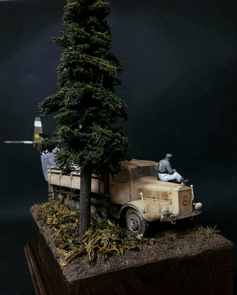 지면에 맞게 웨더링을 해주고, 독일군 방한복 병사(레진)를 구도에 맞게 적용하였습니다.