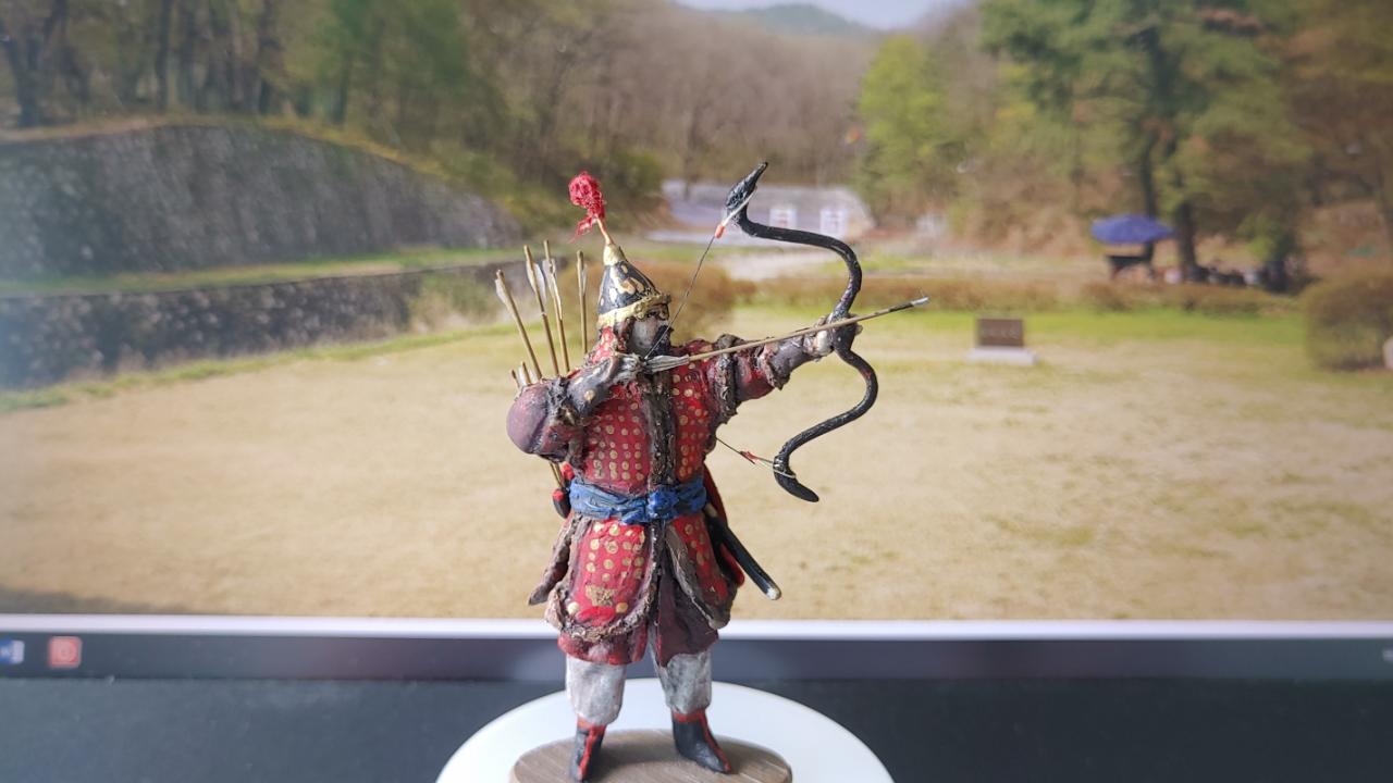 조선 중후기의 두정갑주를 입은 군관의 활쏘기 입니다...