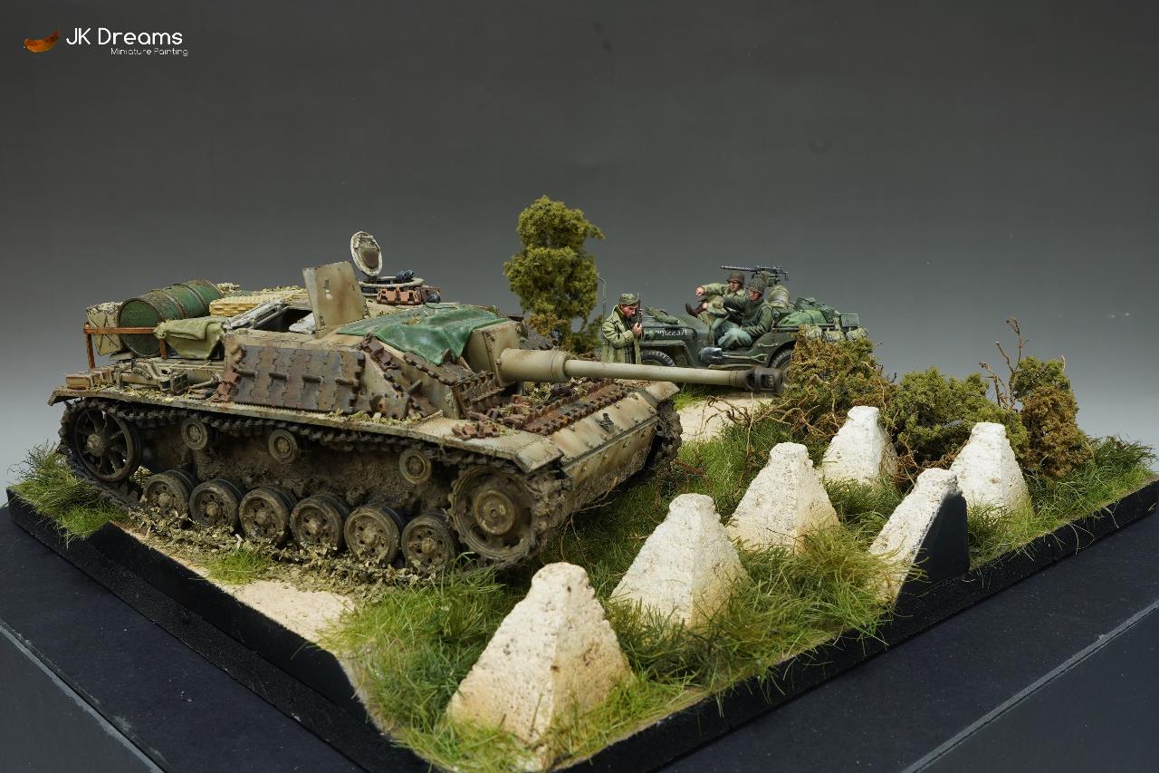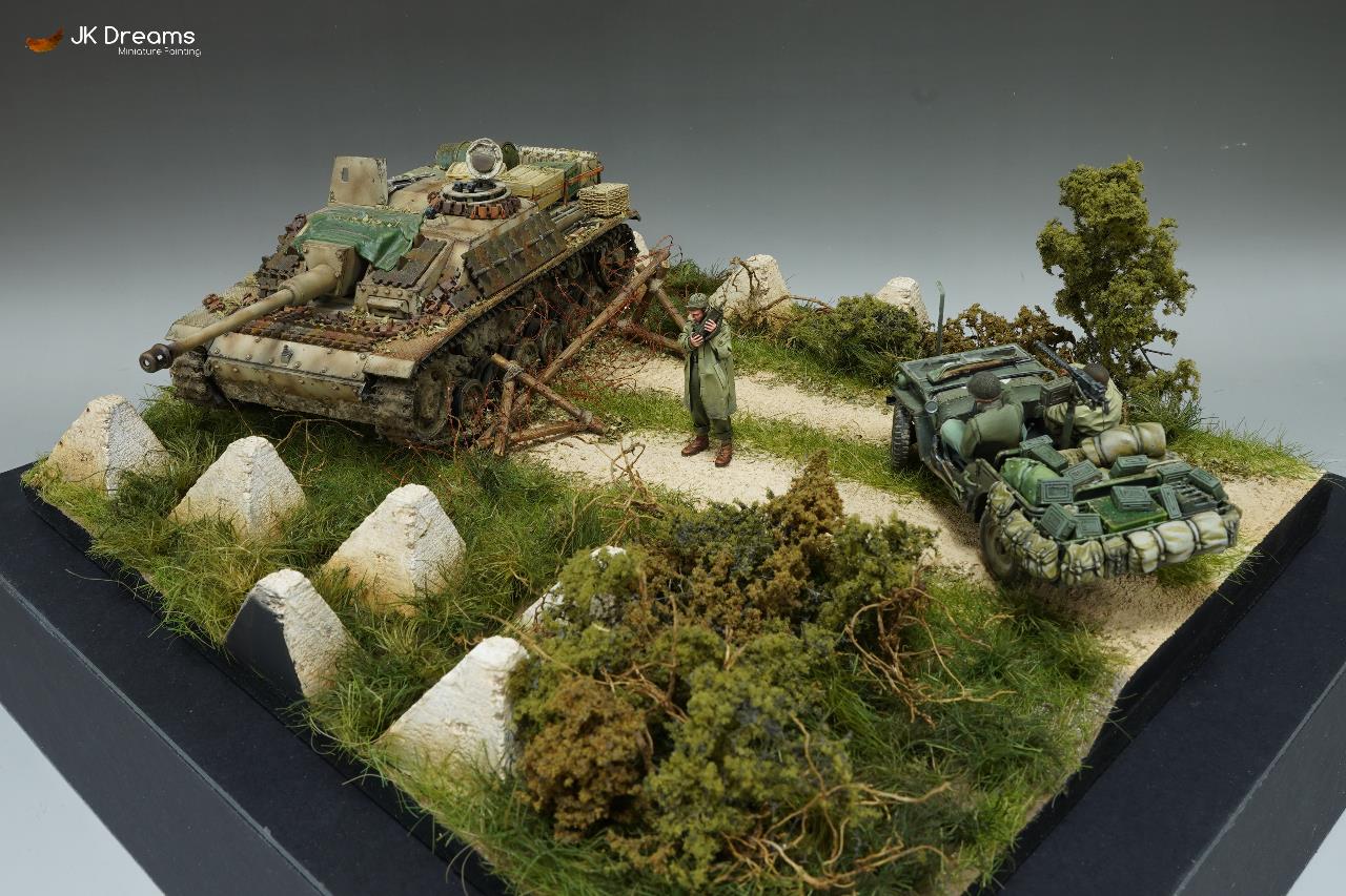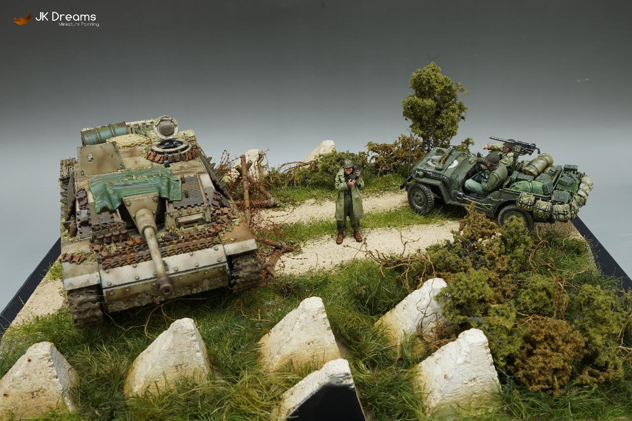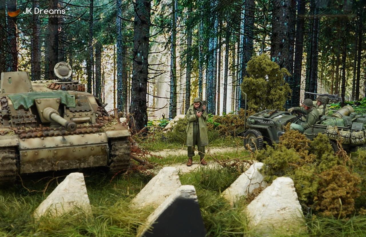 배경은 서 유럽전선 어느지역이며 미군이 정찰도중 장애물을 발견하여 상부에 보고하는 내용을 만들어 보았습니다