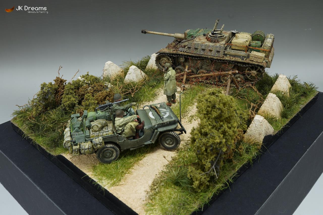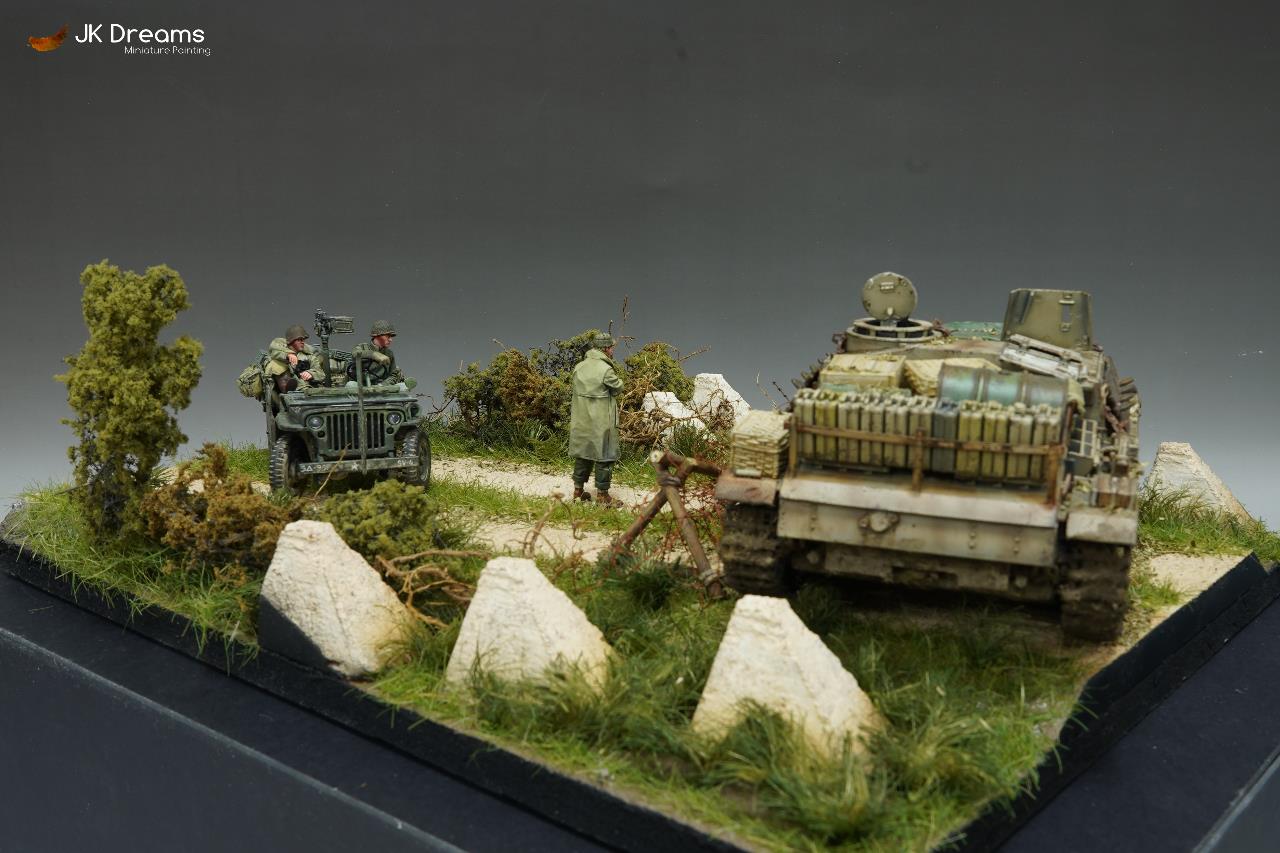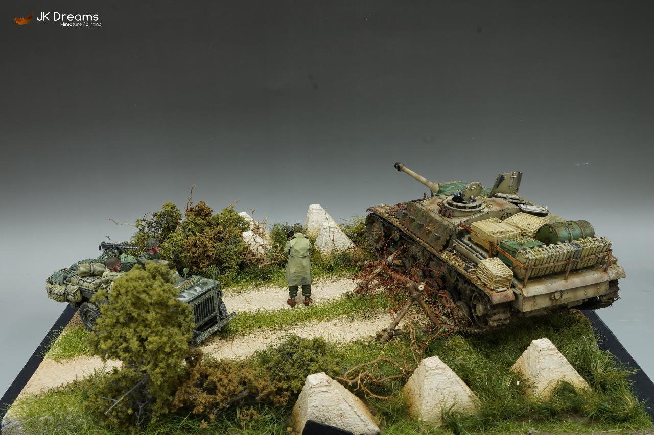 배경은 서 유럽전선 어느지역이며 미군이 정찰도중 장애물을 발견하여 상부에 보고하는 내용을 만들어 보았습니다
