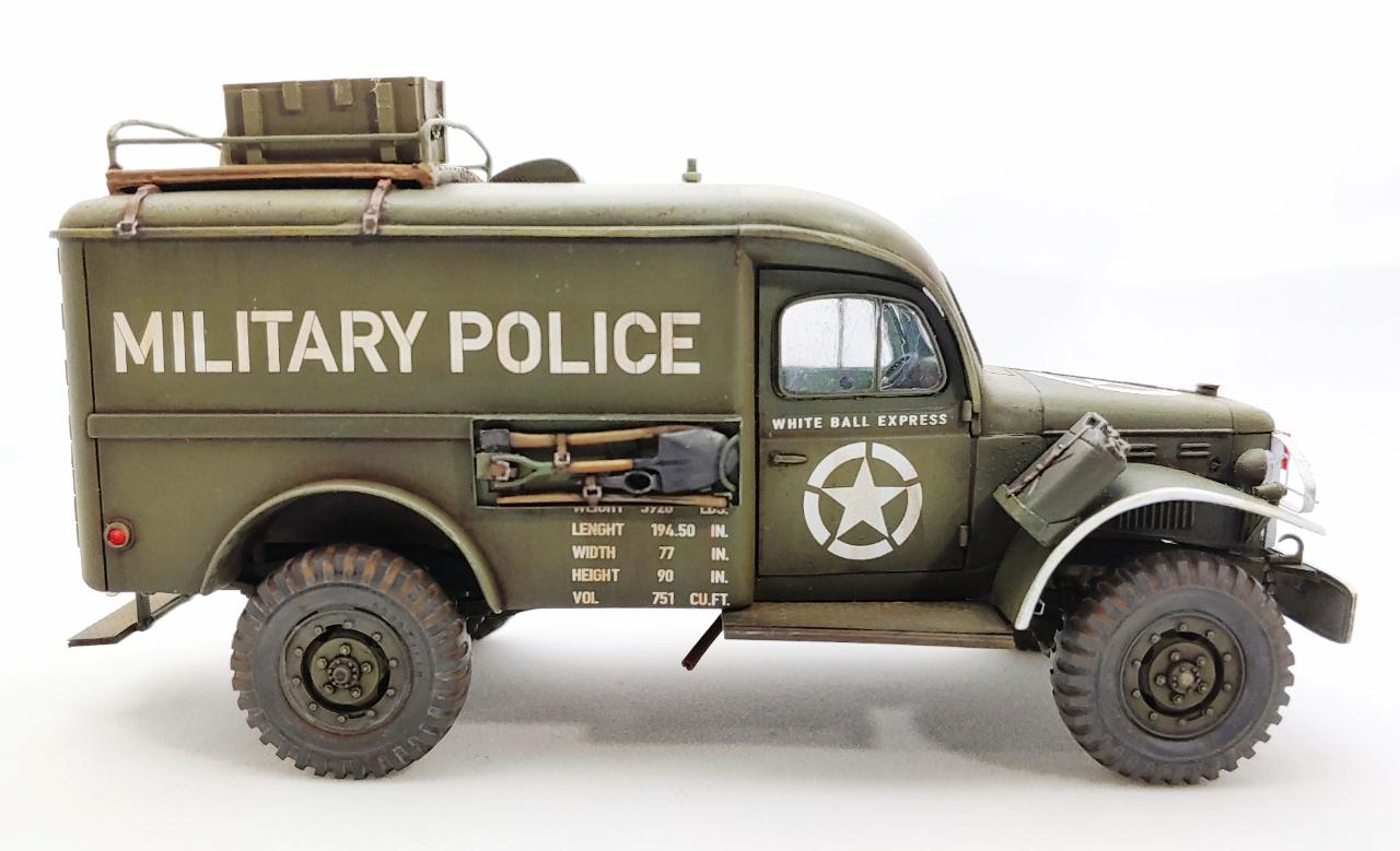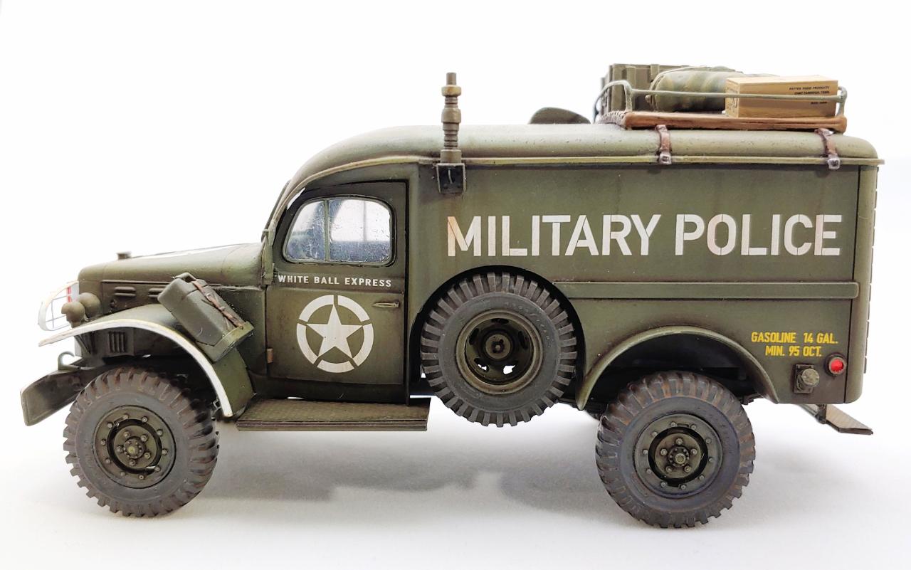 전쟁 후반기에 도시지역을 돌아다니던 헌병대 차량을 생각해서 적당한 웨더링만 해 주었습니다.