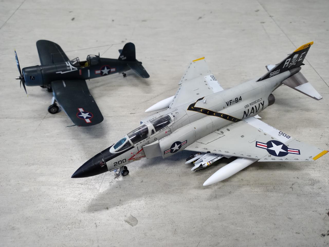 졸리로저스 전 기체에 도전중입니다 현재 완성된 두 기체 올립니다 VF-17 F4U-1A 와 VF-84 F-4J 입니다