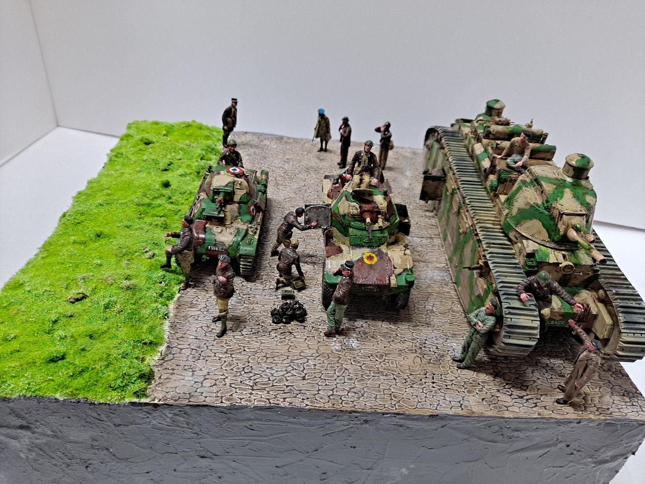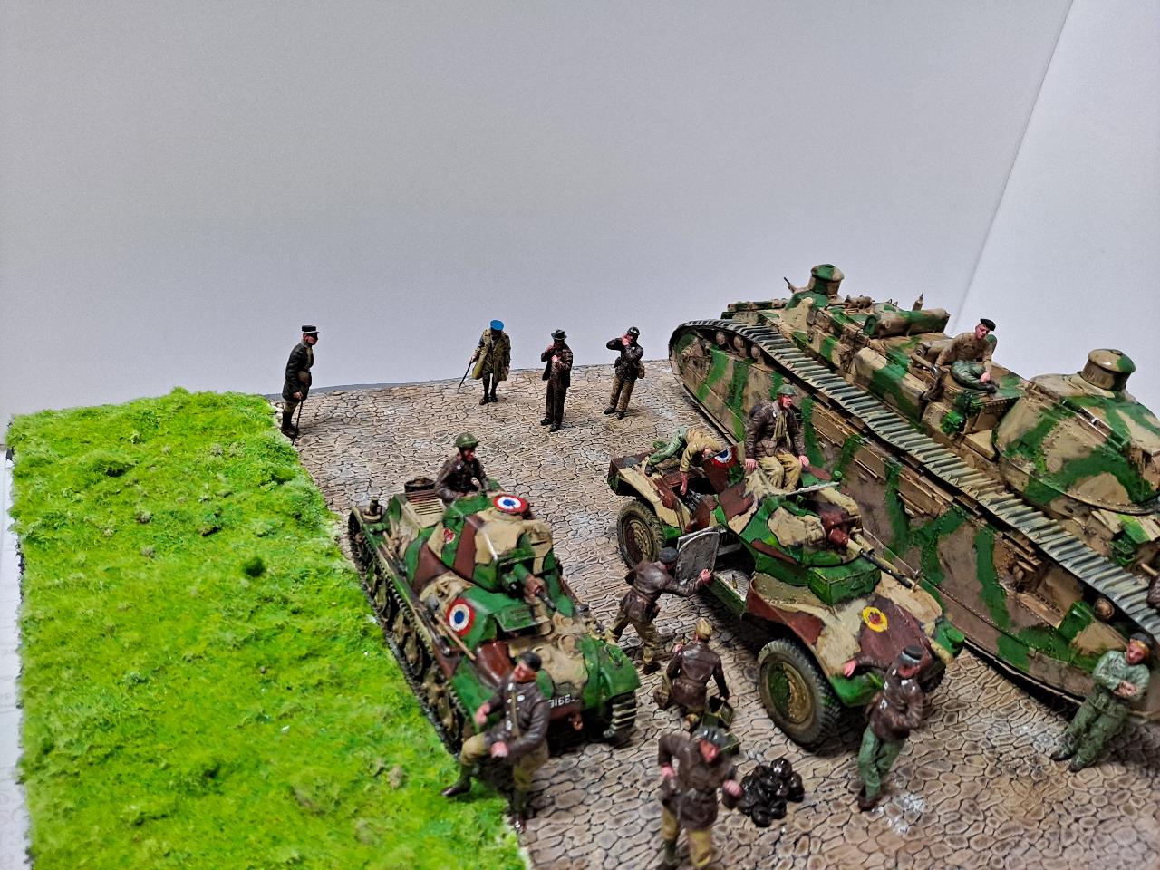 프랑스군 탱크부대가 마지노선 근방에서 수비준비중인 씬을 만들어봤고 드골장군이 마침 방문한 장면을 연출해 봤습니다