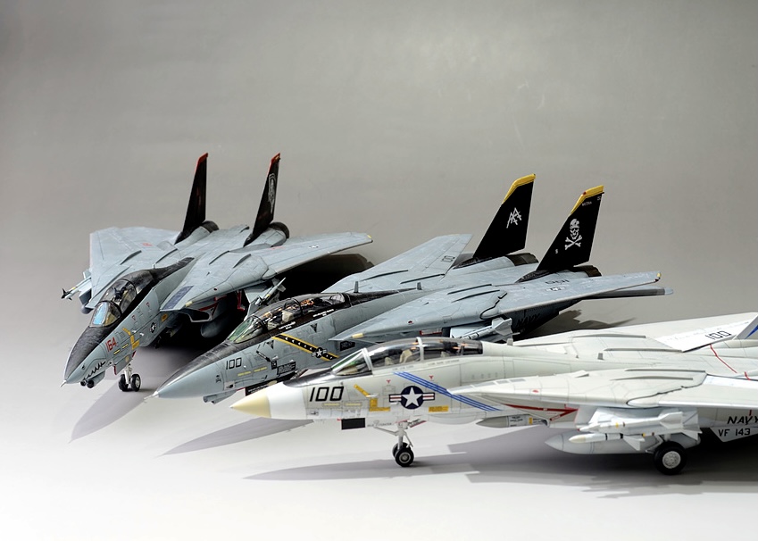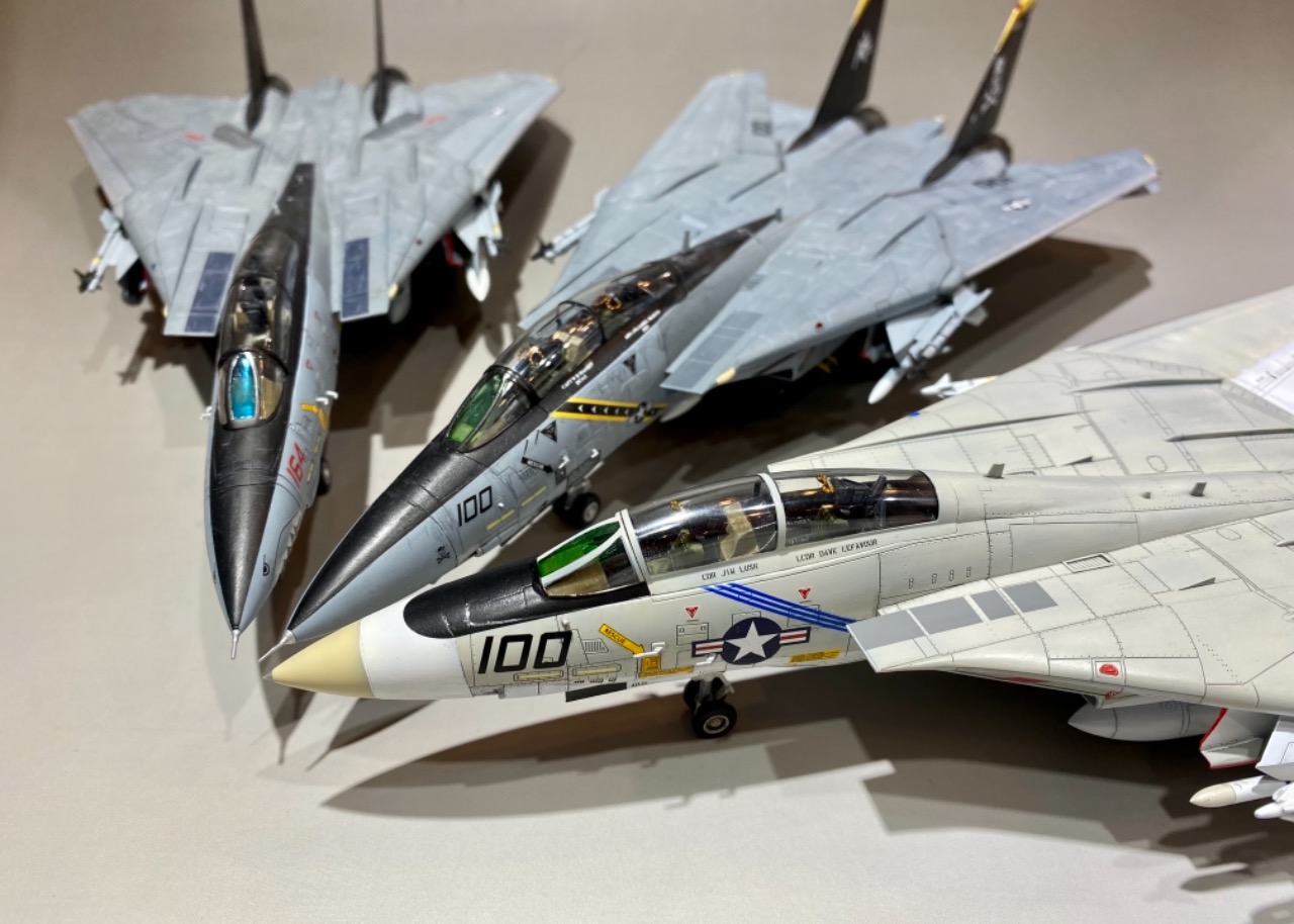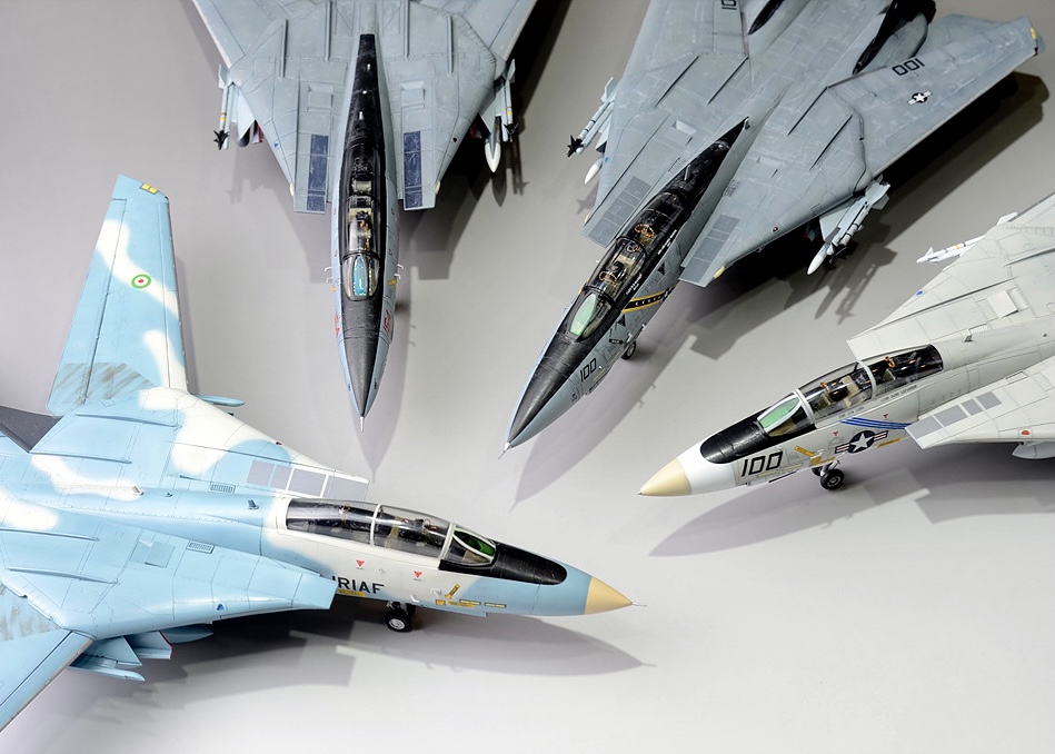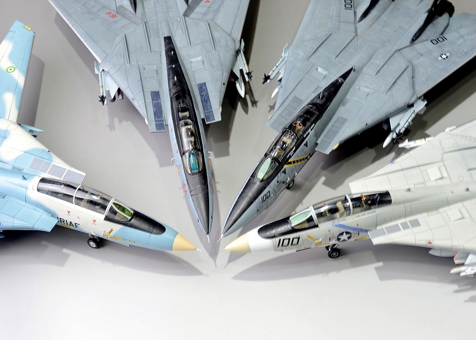 톰캣 A,B,D형을 동시에 만들고 싶었습니다. 거기에 더해서 유일한 운용국으로 남은 이란의 알리캣도 만들고 싶어서 작업을 했습니다.(자세한 작업기는 https://youtube.com/c/plasticharpoon) 먼저 A형중 푸킨독스는 아카데미 신금형 톰캣, 알리캣은 ESCI판 이탈레리킷으로 만들까 했는데 워낙 형태에 문제가 많아서 데칼만 사용하고 하세가와 킷으로 재현. B형 졸리 로져스는 하비보스의 킷으로 마지막으로 D형인 그림 리퍼즈는 레벨 킷으로 작업을 했습니다. 전부 1/72입니다.