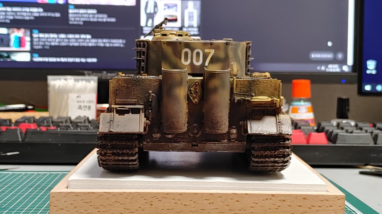 나름 3색위장에 전장의 먼지표현을 좀 해보려고 노력해봤습니다...바퀴와 궤도는 땅 표현재를 조금 발라주고 색감이 맘에 안들어서 나토블랙을 많이 희석해서 흐르듯이 뿌려줬습니다...