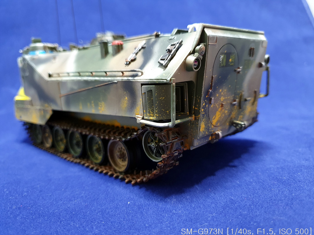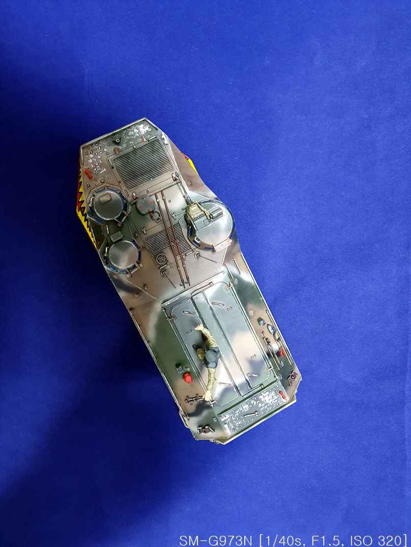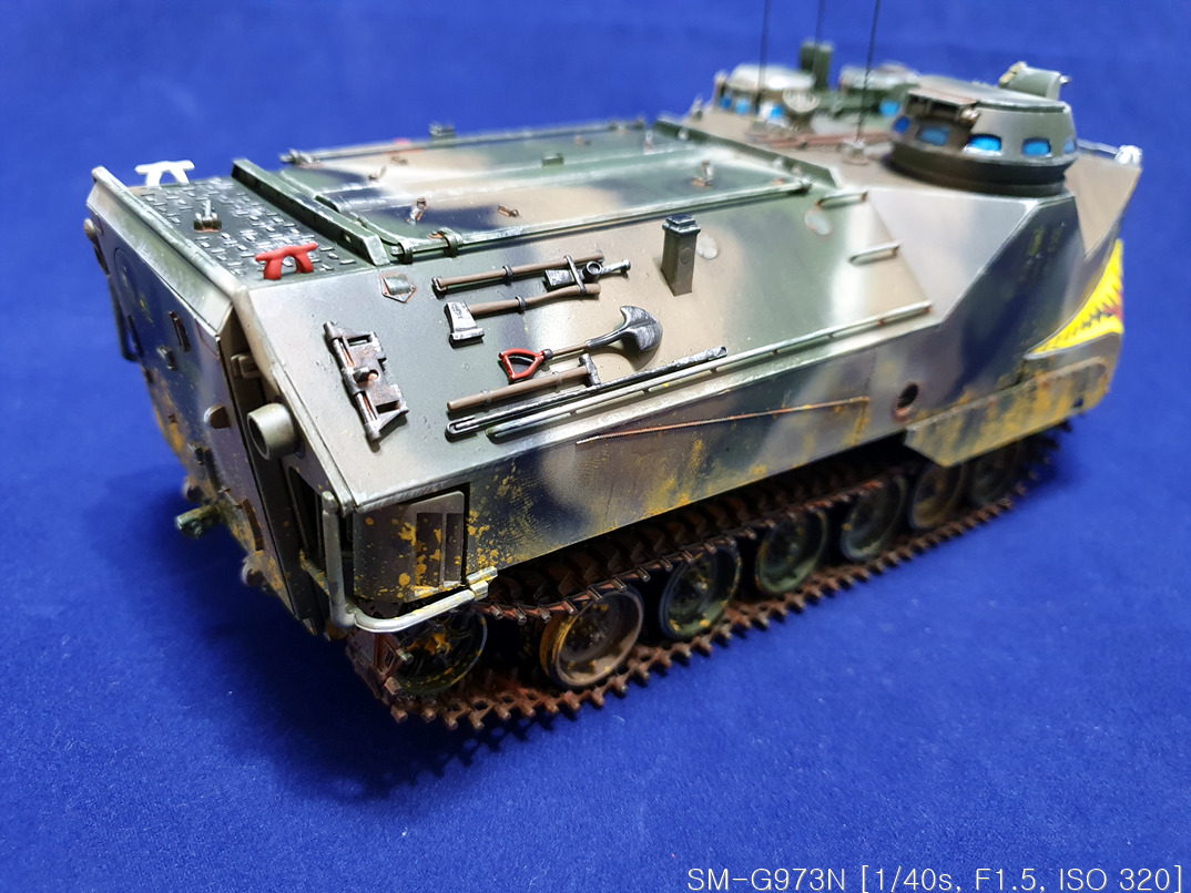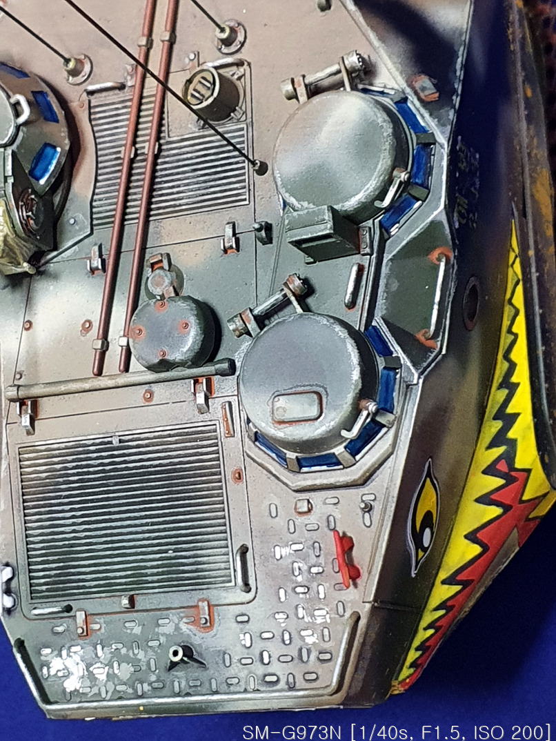 전반적으로 조립성과 디테일 모두 좋은데, 다만 궤도 재질이 본드에 잘 안녹는 재질이라 자꾸 붙여놓으면 떨어져서 나중엔 순접으로 고정을 하고, 목공풀로 군데군데 휠에 케터필러를 고정시켰네요.
