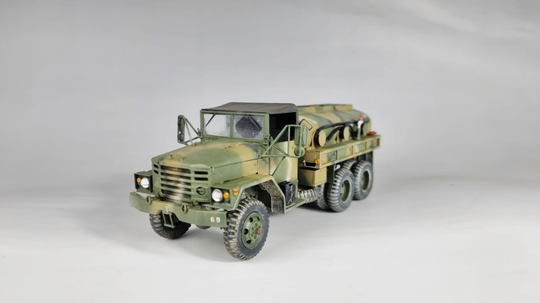 아카데미과학 K511A1 2.5톤 카고트럭을 베이스로하여, AFV CLUB 제 M49A2C 유조차와 믹싱빌드한 작품입니다. 한국군 신형 2.5톤계열의 유조차인 'K513A1' 을 재현해보았습니다.