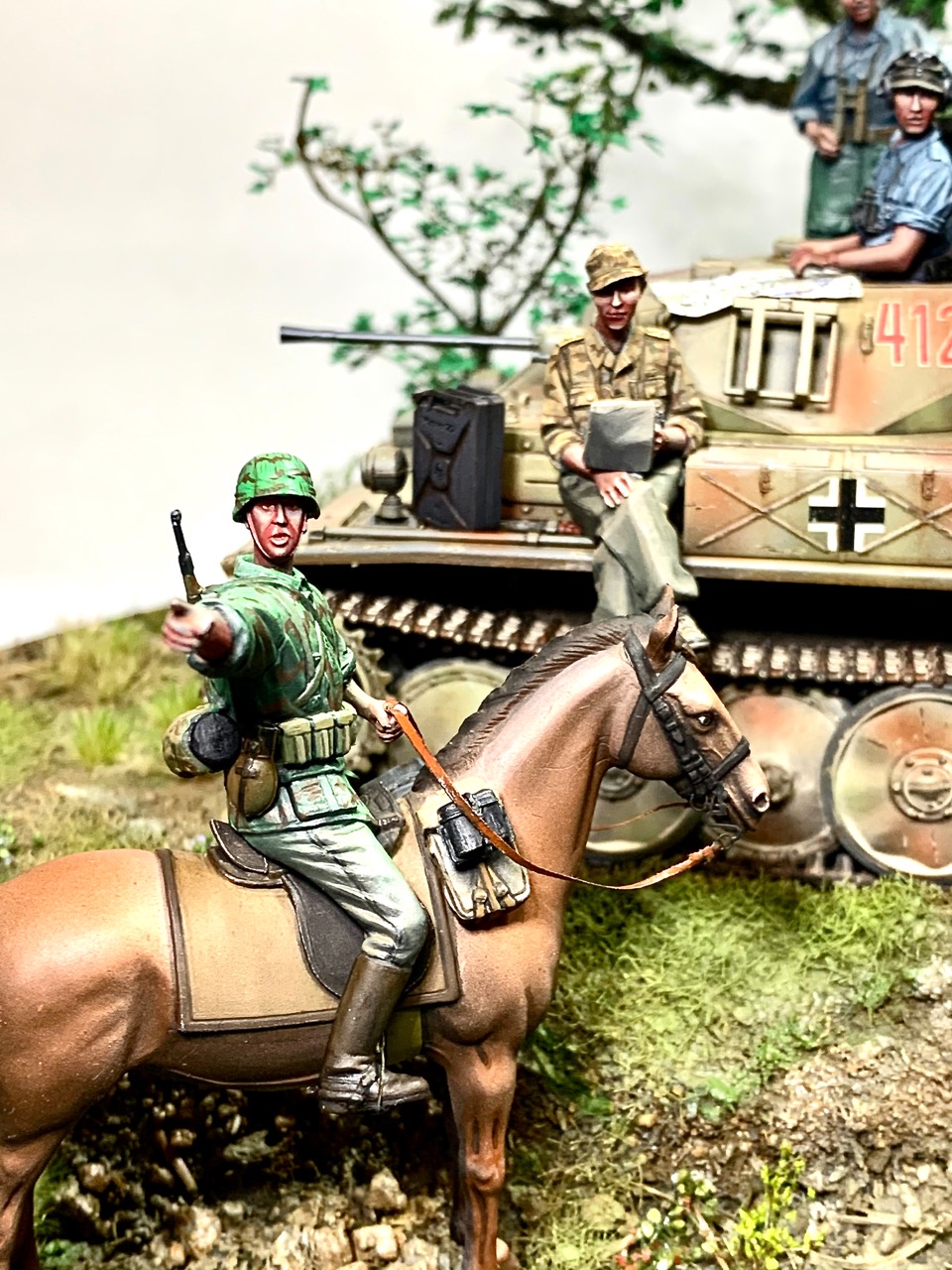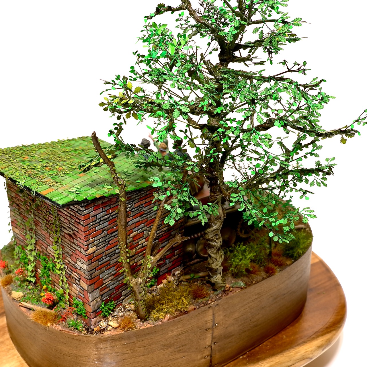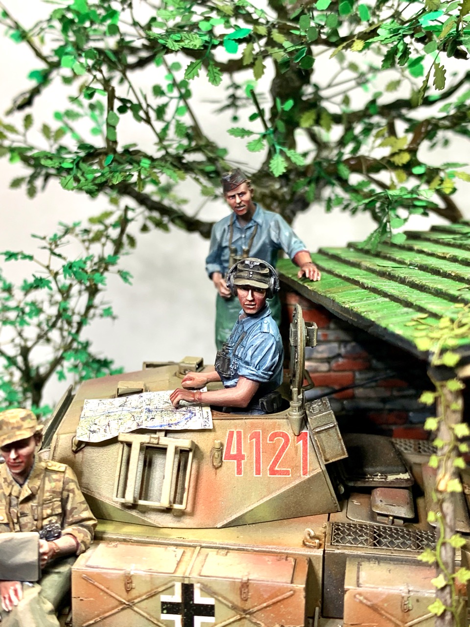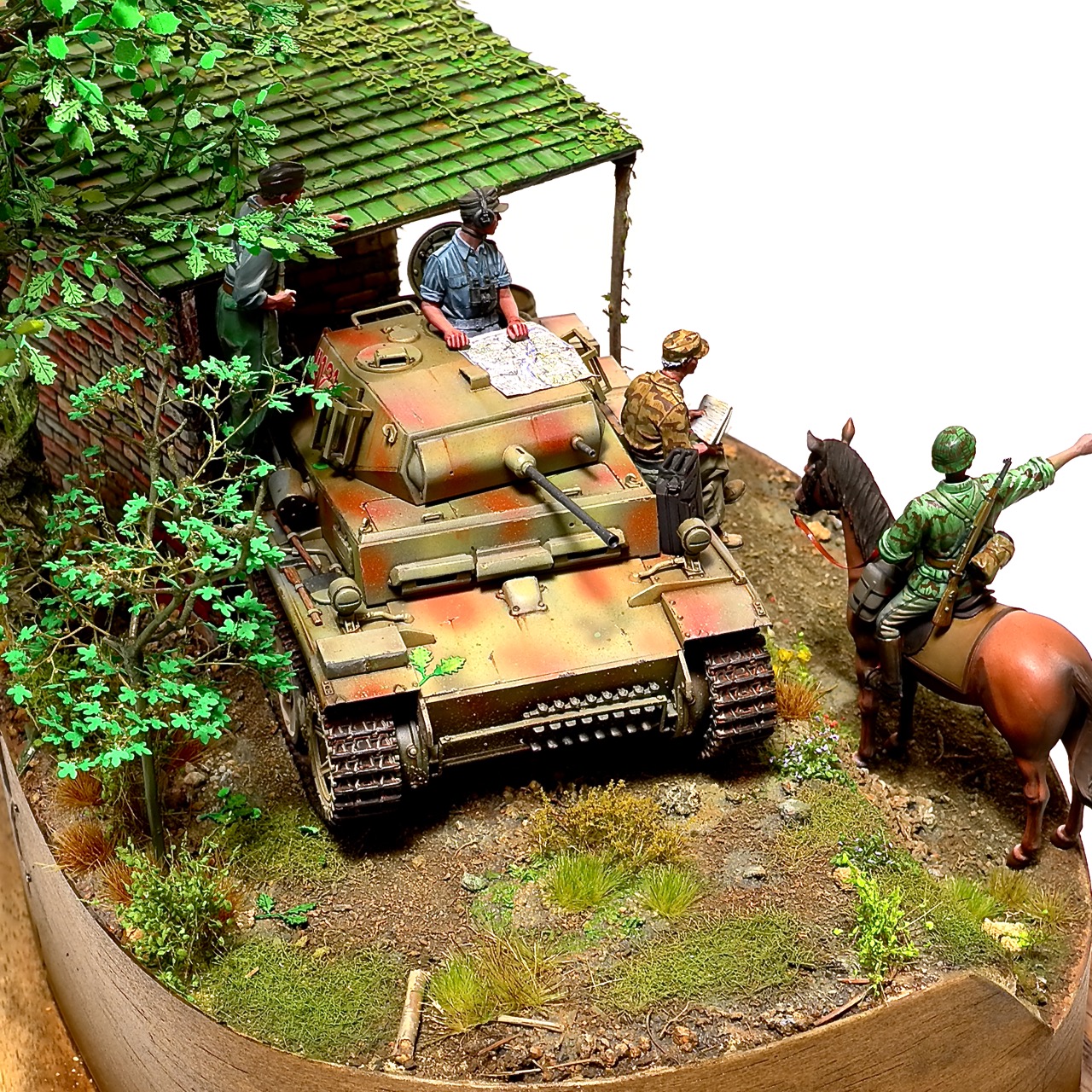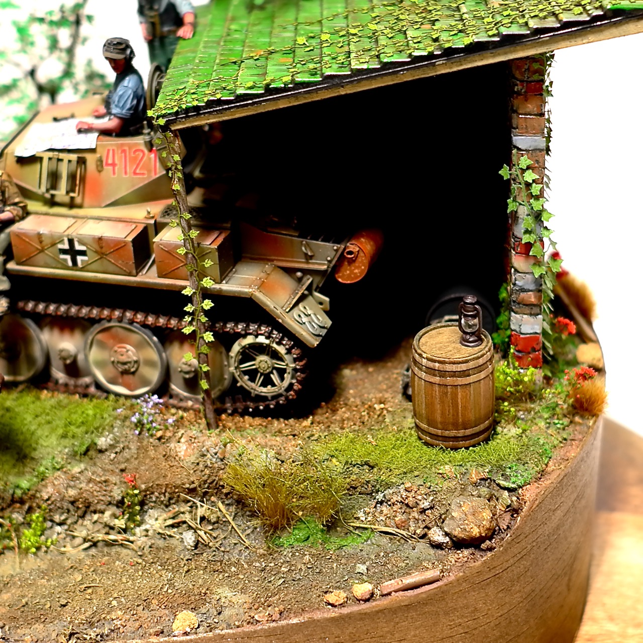 Tasca의 Luchs에 알파인 인형들과 드래곤제 말과 보병을 이용하여 작은 비넷을 만들었습니다. 1944년 노르망디가 배경이며 연합군의 항공전력을 피해 낮시간동안 버려진 헛간에 숨어있다 슬슬 활동을 시작하는 상황을 표현해봤습니다. 나무를 만드느라 힘들었는데 하나하나 잎사귀를 붙이던 저의 작업기를 보시고 MMZ에서도 활동하시는 '지재형'님이 레이져 커팅된 멋진 잎사귀를 보내주셔서 완성을 볼 수 있었습니다. 이 자리를 빌려 다시 한번 감사의 말씀을 드립니다!