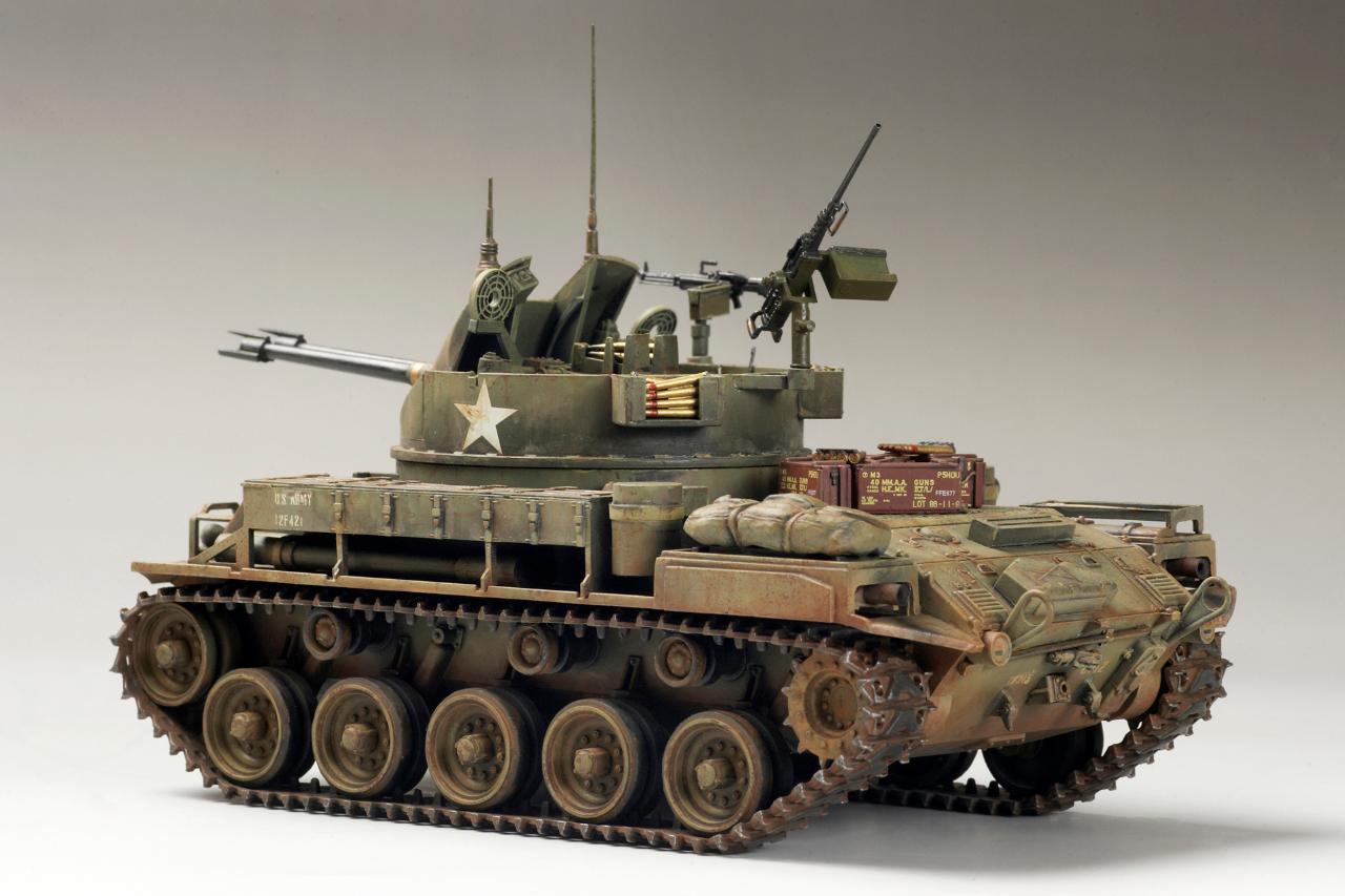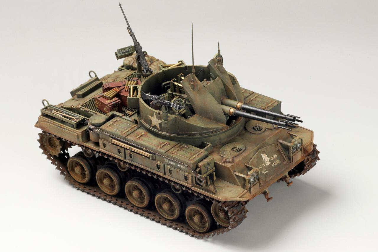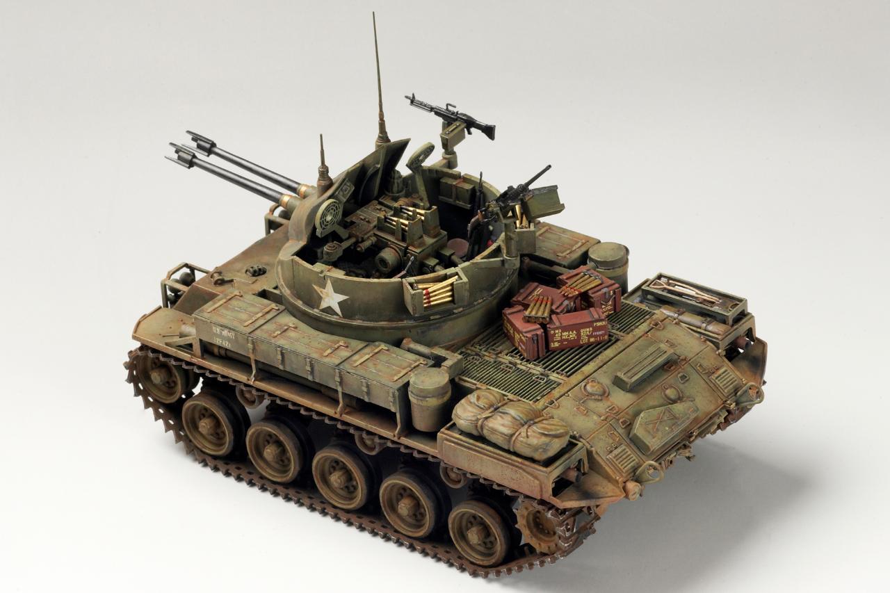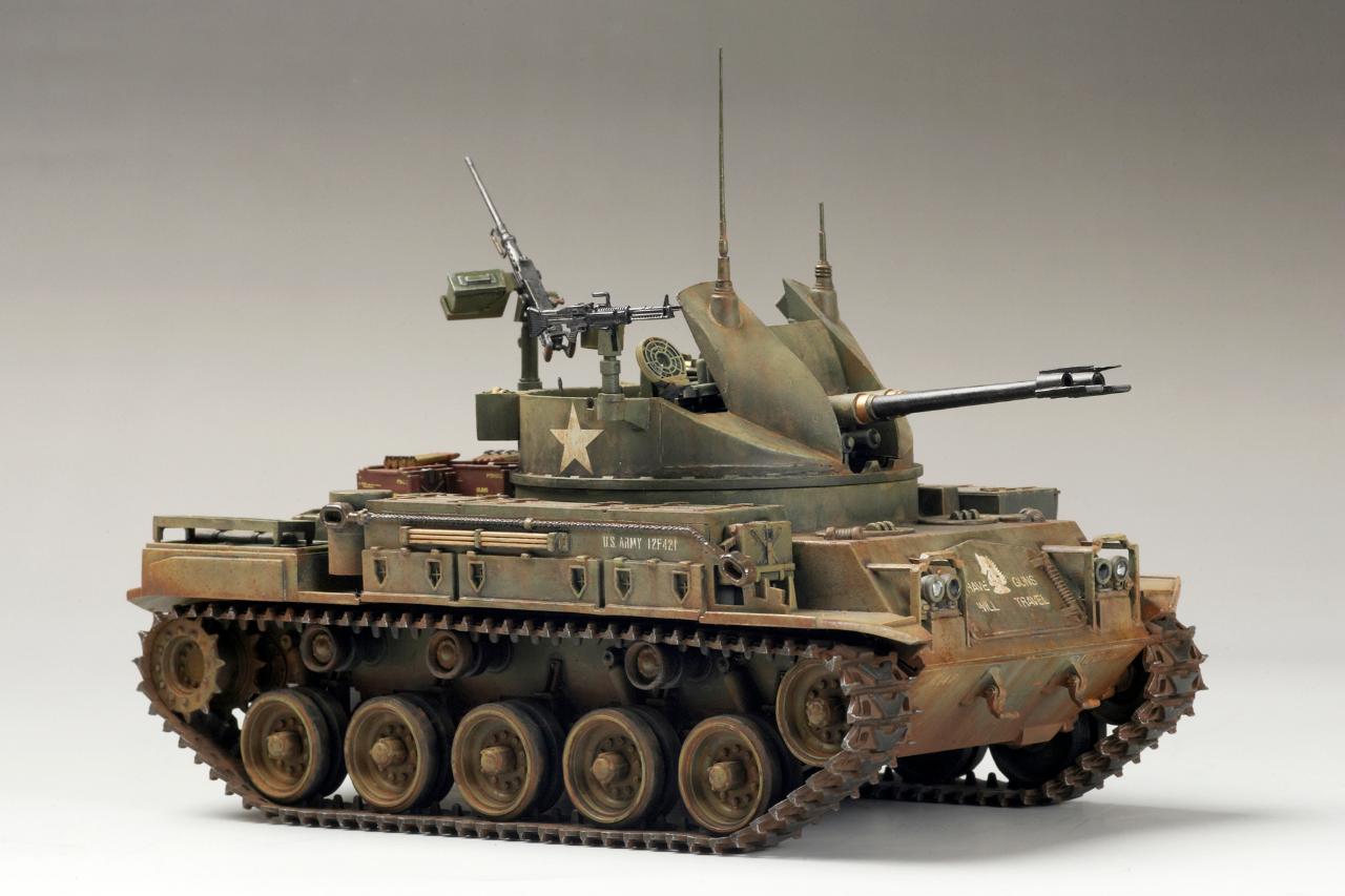 안녕하세요 타미야 M42 Duster 입니다 각인을 보니 1970년 금형이더라구요. 구판이라 생략된 부분이 아주 많습니다 그래도 조립은 금방이더군요. 거의 킷 그대로 스트레이트 빌드이구요 총기와 방수포만 아카데미 불용품 써줬고 AFV CLUB의 탄박스와 포탄을 추가해 줬습니다 이왕이면 포함된 피규어도 태울까 했는데 베트남전 버전이라 복장이 안맞아 그냥 빼버렸습니다. 기본도색은 군제 락카 모듈레이션 세트를 썼고 타미야와 미그 아크릴로 부분도색 했습니다. 웨더링은 미그의 이펙트와 피그먼트를 사용했습니다 ^^