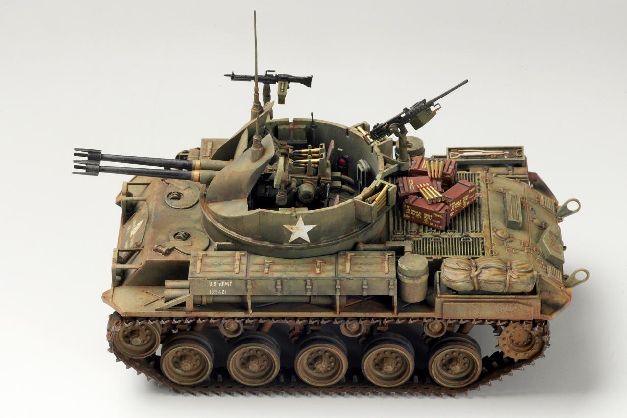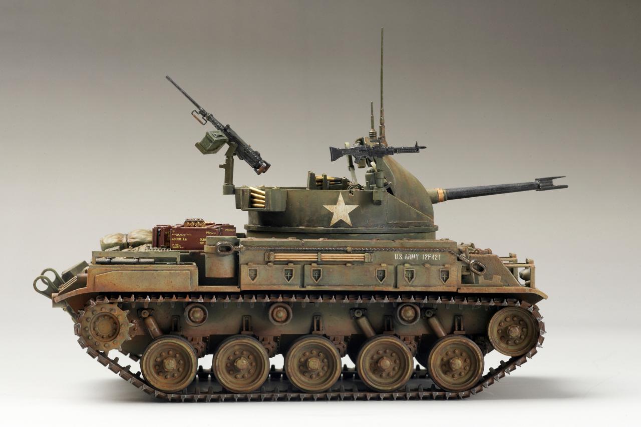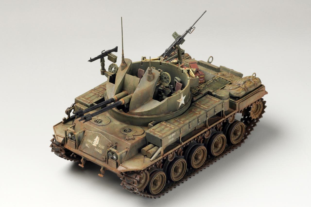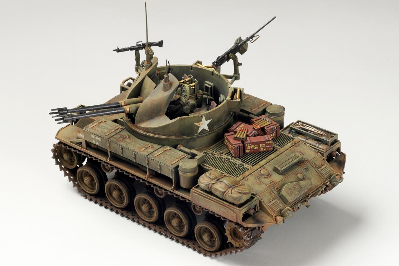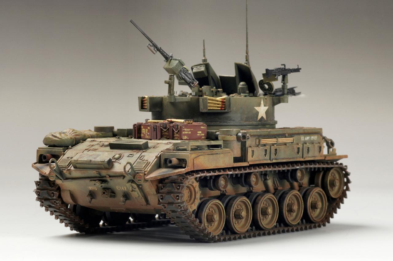안녕하세요 타미야 M42 Duster 입니다 각인을 보니 1970년 금형이더라구요. 구판이라 생략된 부분이 아주 많습니다 그래도 조립은 금방이더군요. 거의 킷 그대로 스트레이트 빌드이구요 총기와 방수포만 아카데미 불용품 써줬고 AFV CLUB의 탄박스와 포탄을 추가해 줬습니다 이왕이면 포함된 피규어도 태울까 했는데 베트남전 버전이라 복장이 안맞아 그냥 빼버렸습니다. 기본도색은 군제 락카 모듈레이션 세트를 썼고 타미야와 미그 아크릴로 부분도색 했습니다. 웨더링은 미그의 이펙트와 피그먼트를 사용했습니다 ^^