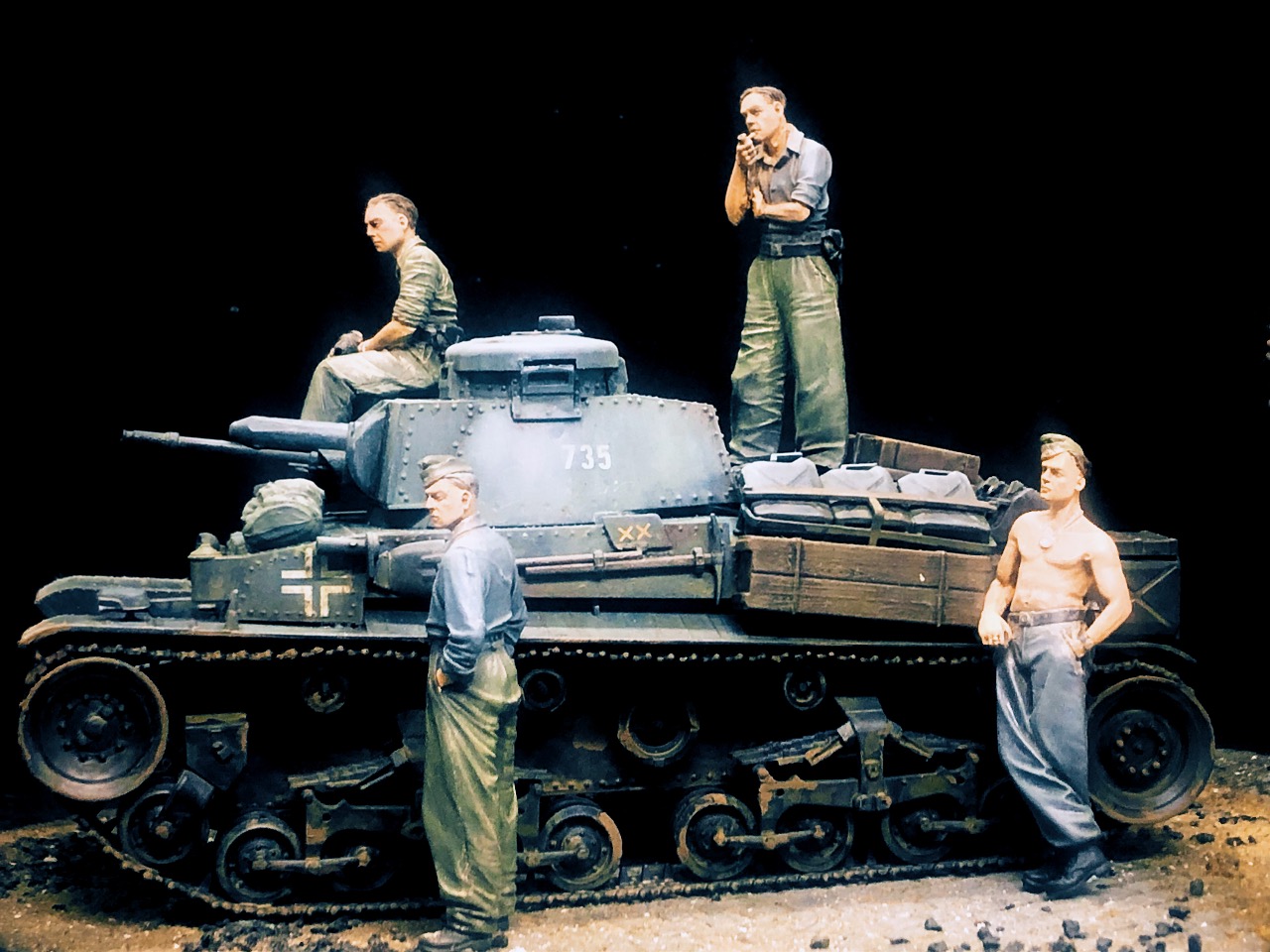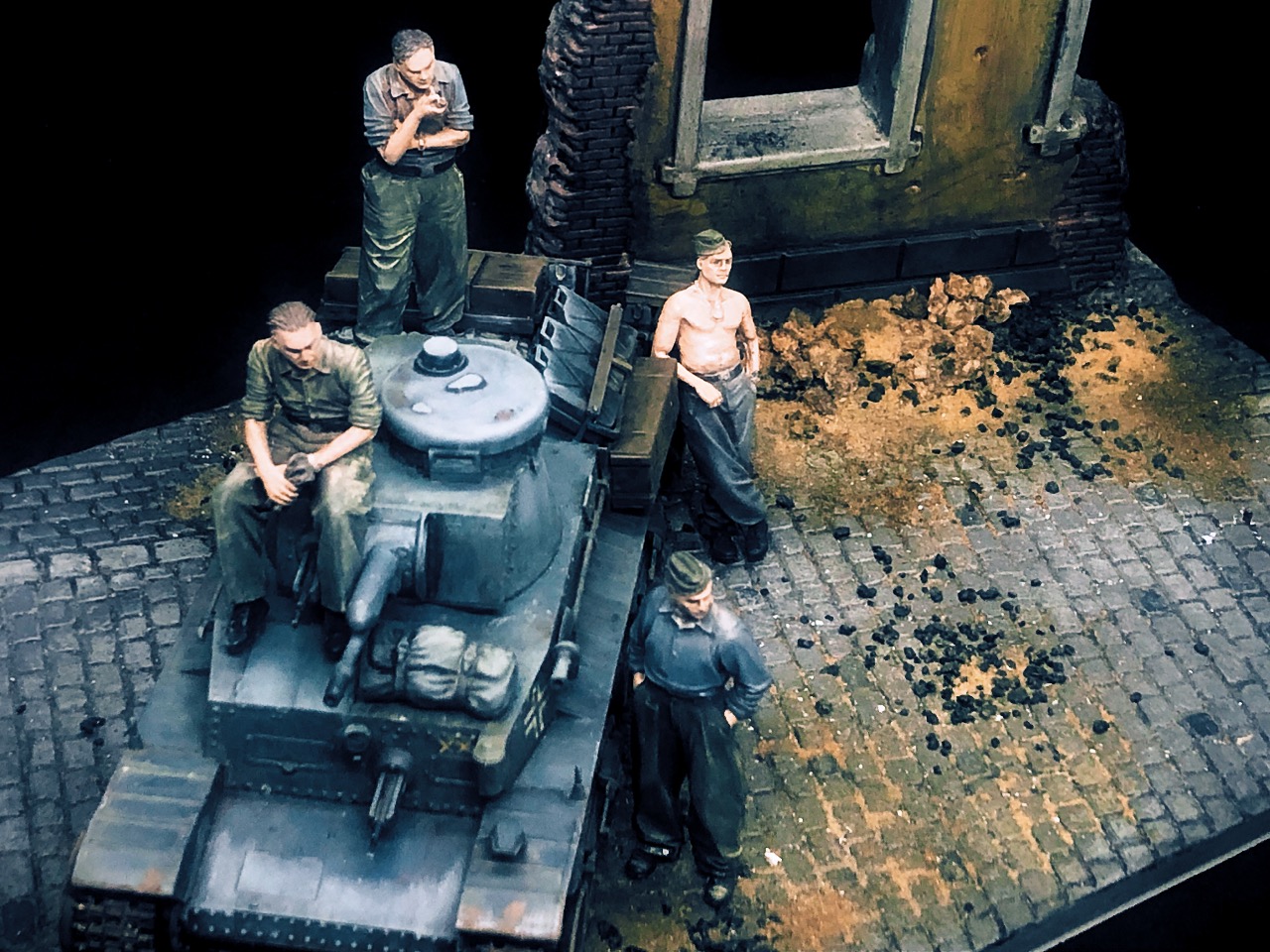 별다른 디테일 업과 컨버젼 없이 스트레이트로 진행했고 몇몇 작은 부품이 ‘모뮤다 삼각지대’ 사라졌지만 기냥 무시 하였습니다. 베이스는 사진 촬영용으로 만들어 놨던 미니아트 제품이고 피규어는 오래전 도색 해 놨던 녀석들을 살짝 리터치만 해 줬네요.