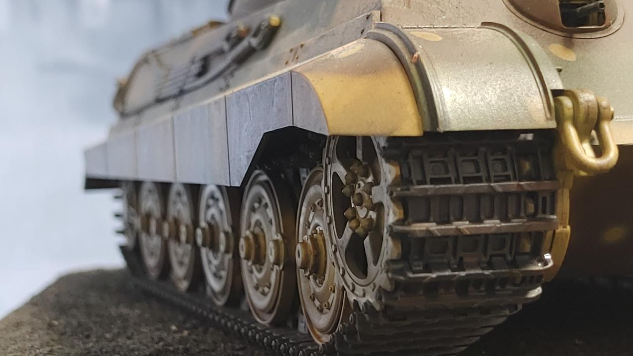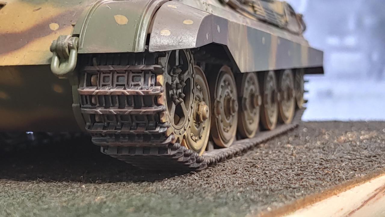 시가전을 상정해서 궤도는 특별히 더 더럽히거나 하지 않고 그라파이트 도색위에 메탈블랙+러스트 조합으로 드라이브러싱 정도만 추가해 주었습니다...