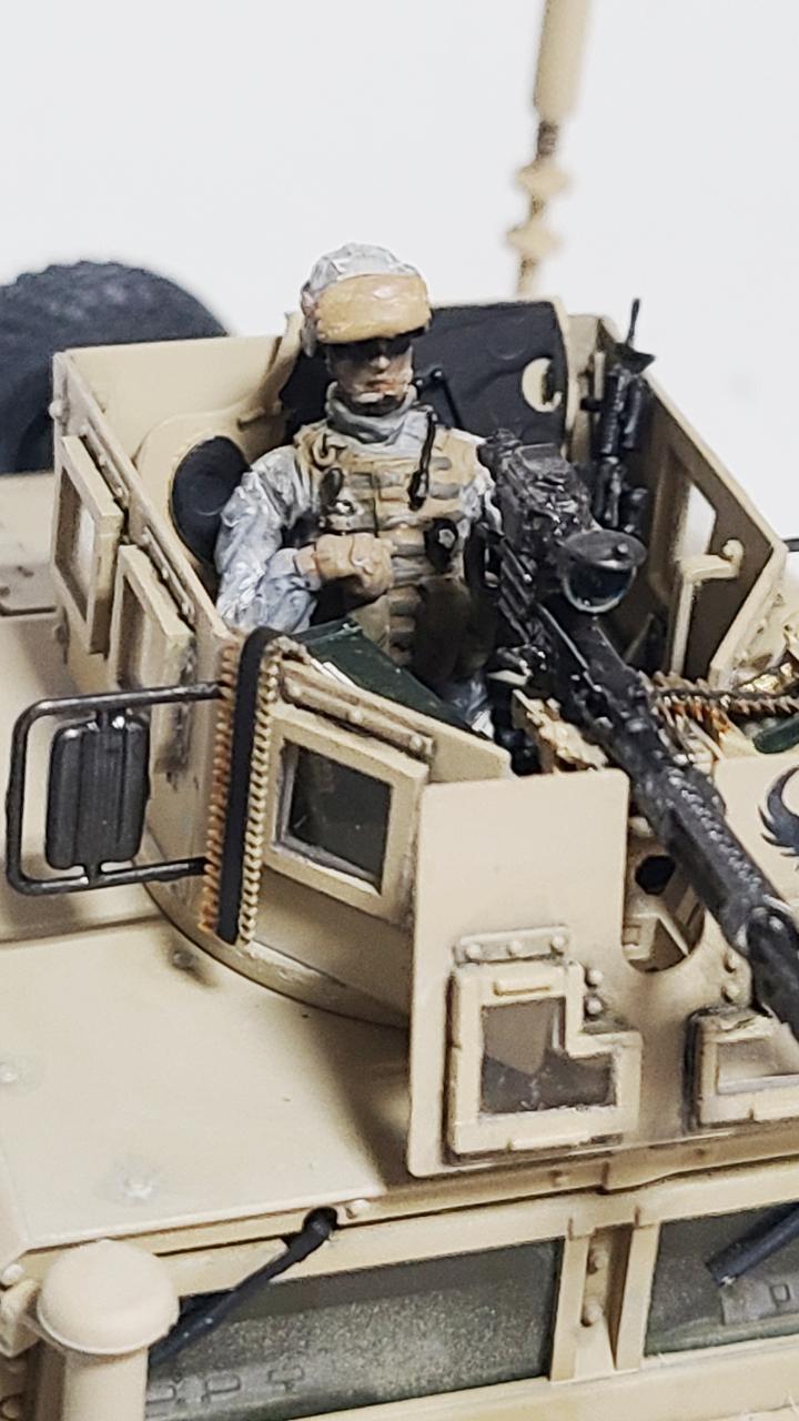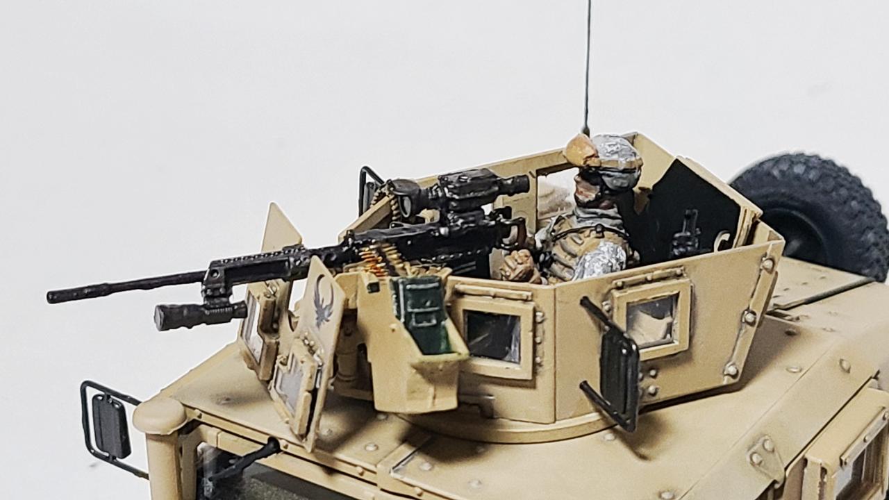 기존에 만들었던 아카데미 M1151 험비의 Turret에 레전드사의 거너 인형과 광학조준경이 달린 M2, 그리고 탄통과 탄띠, 병사의 개인화기 M4 등을 달아주었습니다.