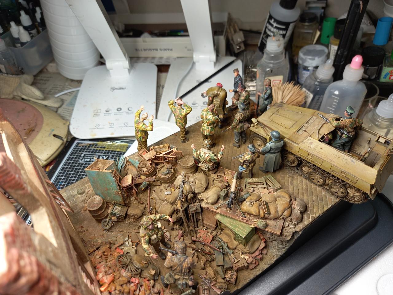 지금 초등학교 2학년이 된 제 둘째 아들이 태어났을때 만들기 시작한 디오라마입니다. 한참걸렸네요. 인형색칠이 너무 안되고, 필요한 포즈를 구할수가 없어서 하염없이 제작기간이 길어졌습니다. 이번디오라마는 마켓가든 작전이 실패로 끝나고 아른헴에서 항복하는 영국군이지만, 용감하게 잘 싸웠기에 명예롭게 항복한다는 이야기를 하려고 합니다.