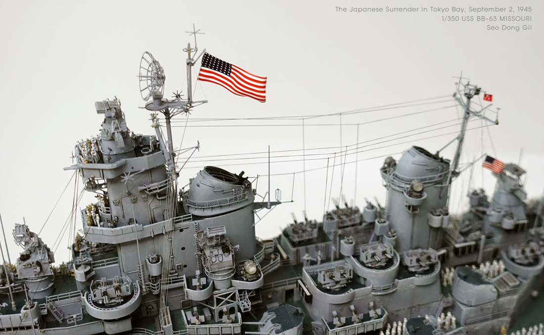 나머지 깃발들은 합동과학 미주리에 있는걸 썼고 없는건 대충 그려서 붙였습니다. 합동 미주리 키트에 데칼이 의외로 유용하게 쓰였습니다.