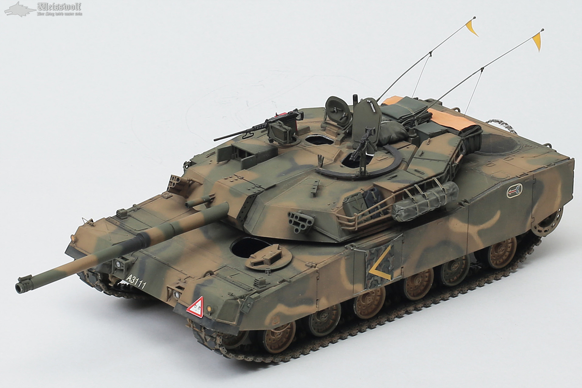 부대에서 제작한 좌측 펜더의 안전 삼각대, 포탑후방의 추월금지 경고판, 3번 스커트의 V자 식별판 등도 그대로 만들어 봤습니다.