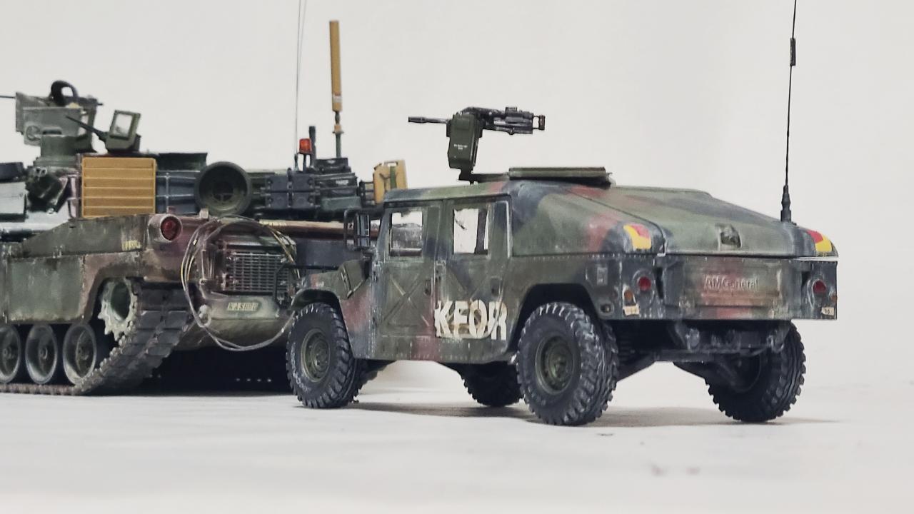나토3색으로 도색된 애브람스 탱크와 함께 찍어 봤습니다.