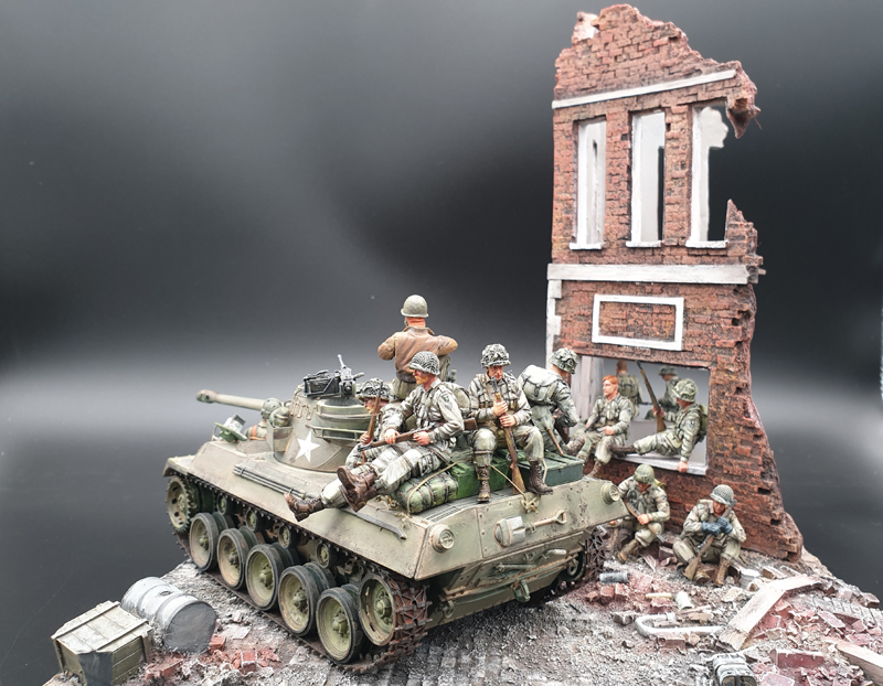 1944년 프랑스전선/ 시내로 진군하는 미군 101공수사단 휴식장면을 재현해봤습니다.