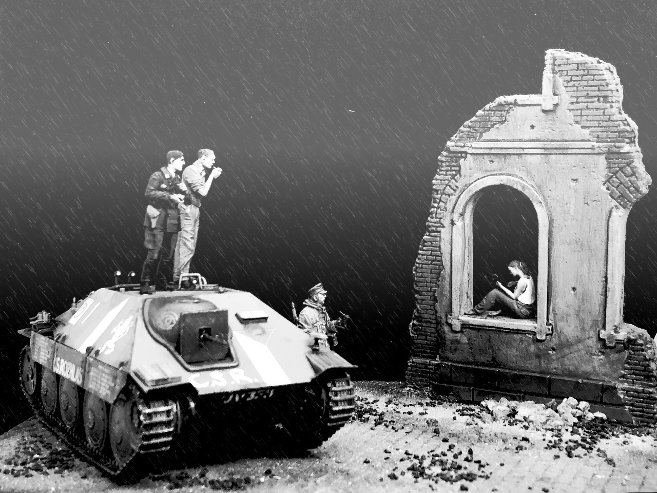 베이스는 사진 촬영용으로 만들어 놓은 미니아트의 파괴된 거리 키트를 활용했습니다.