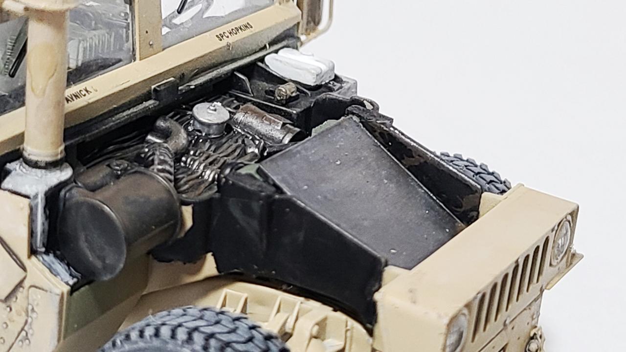 브롱코의 M1114는 엔진룸을 아주 조금 구현해 놨습니다. 덕분에 본네트 안쪽도 도색해야 하지요 ^^;