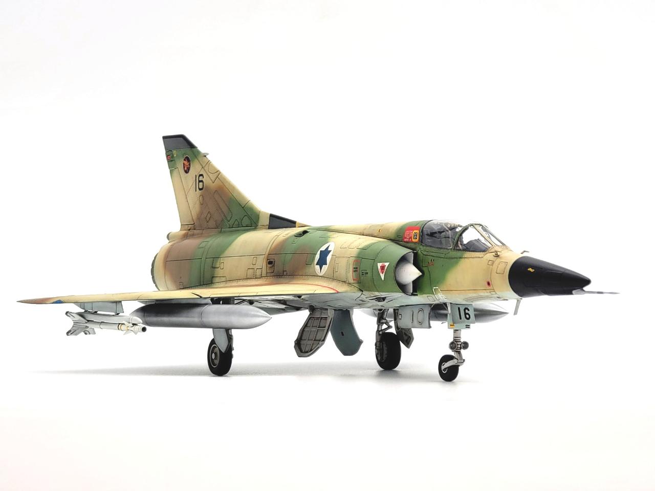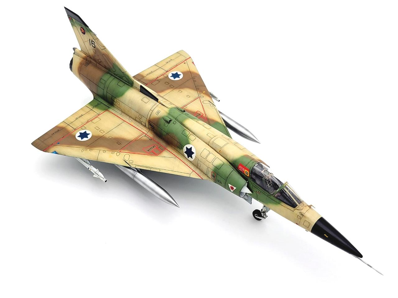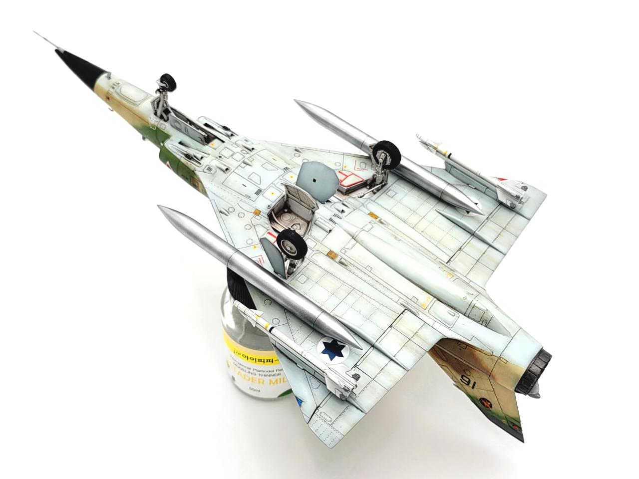 키네틱 1/48 네셔입니다. 키네틱 미라지 시리즈가 만들 땐 고생스럽지만 만들고나서 주는 느낌이 굉장히 좋아 중독성이 있는 키트인 것 같습니다. 키트에 있는 도색예시는 노란 삼각형이 있는 기체만 있지만 삼각형이 없고 위장뮈늬가 그려진 미라지를 만들어보고 싶어 4차중동전 직전인 73년 8월 기체로 만들었습니다. 요즘 계속 뽑기운이 없는 건지 피토관 관련부품이 부러진 상태로 들어있는 키트만 구하게 되서 피토관만 별매로 교체하고 나머진 스트레이트로 제작을 하였습니다.
