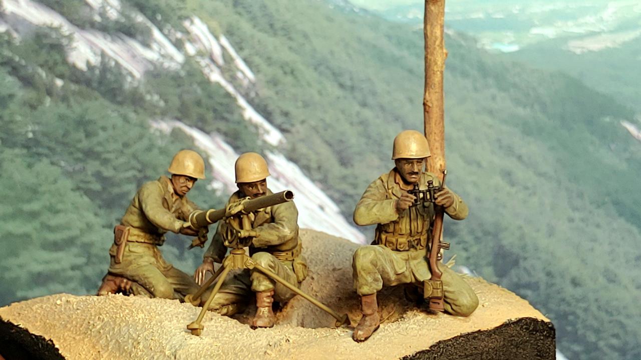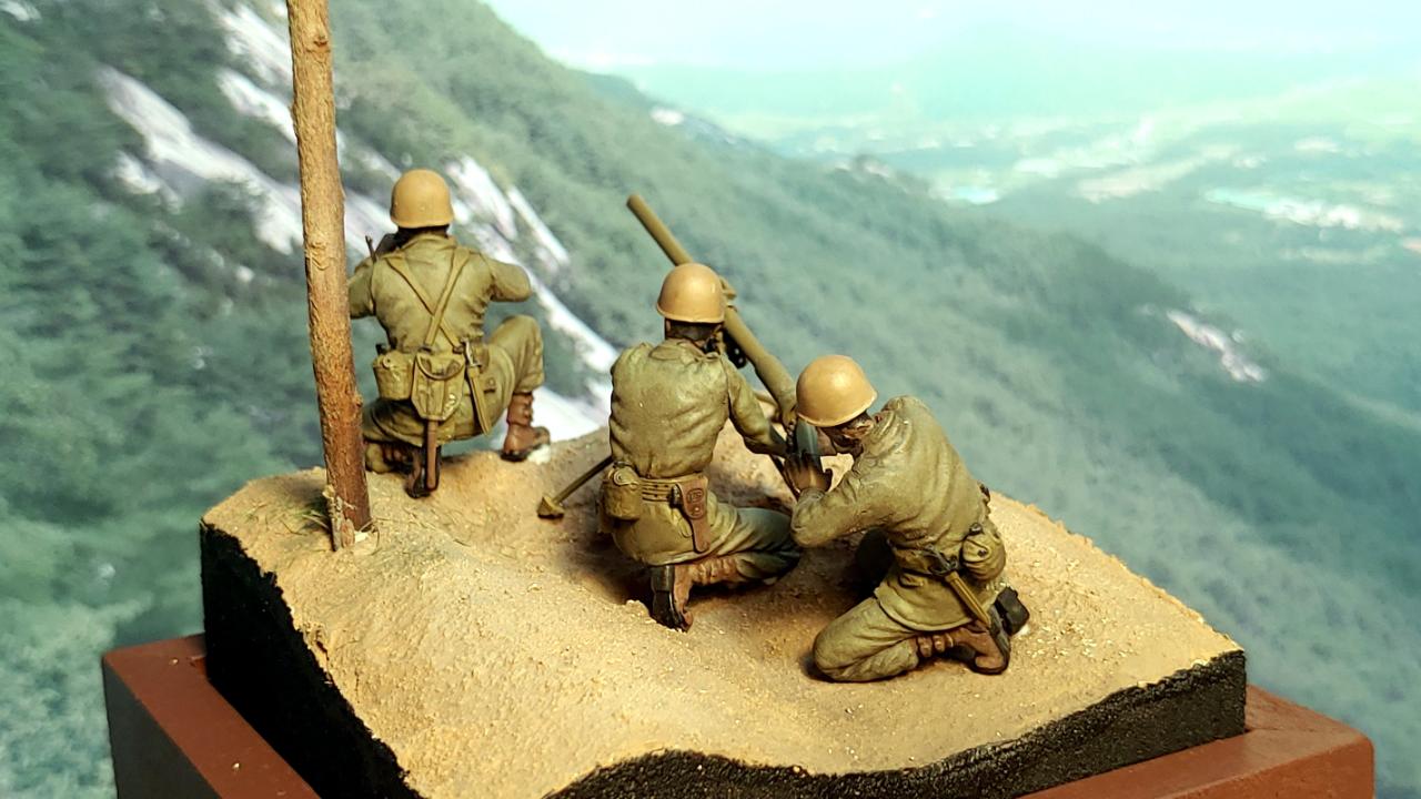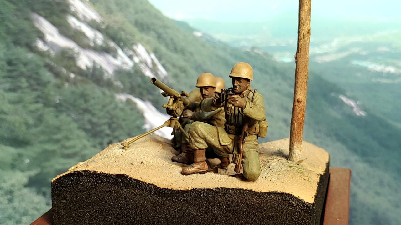 피규어는 타미야 2차대전 미군보병세트 3개정도를 이리저리 조합해서 최대한 비슷한 포즈를 잡아봤습니다...